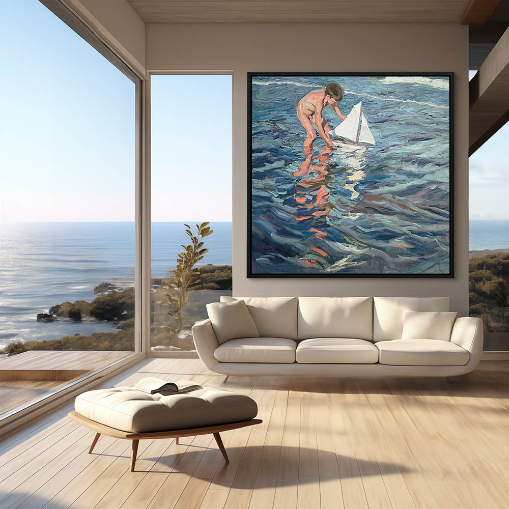 From $24.97Boy in the sea with a toy sailboat