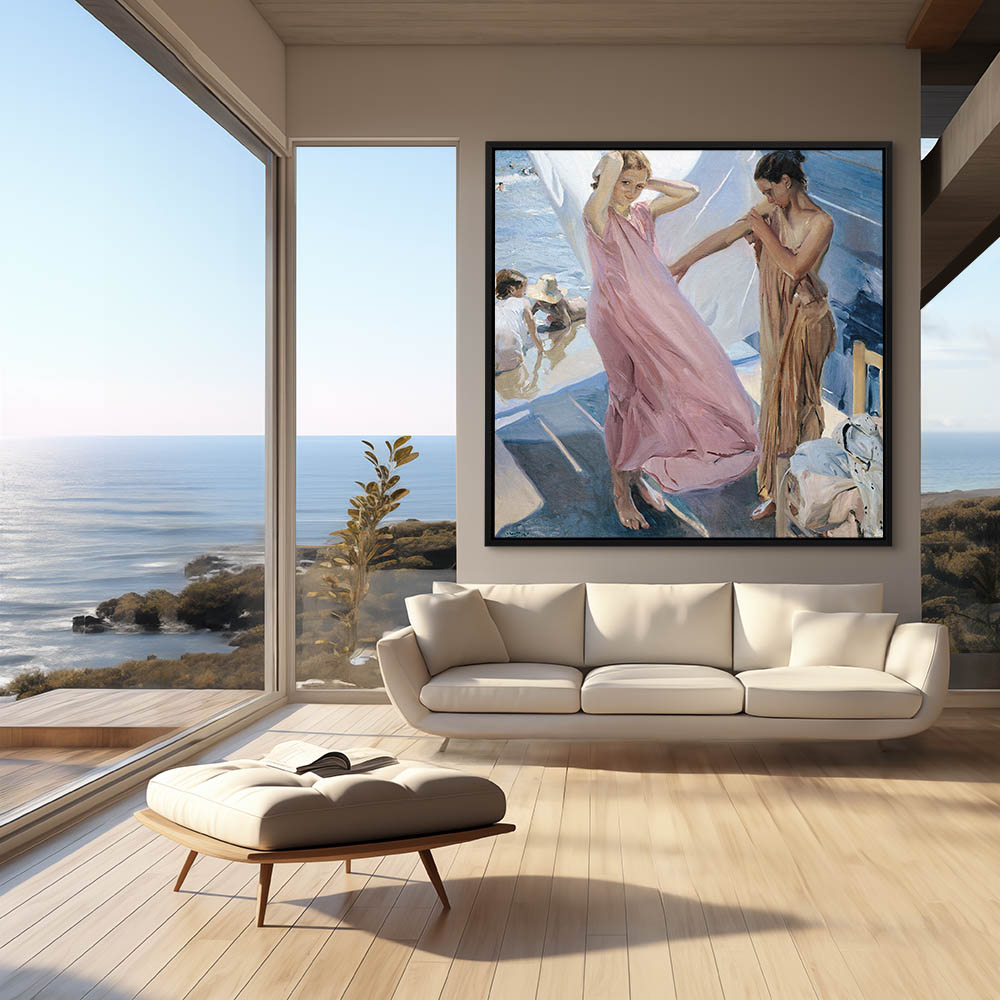 Girls in a changing room on the beach