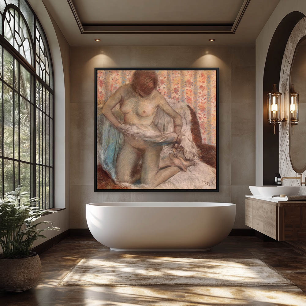 Female nude, kneeling, drying after the bath