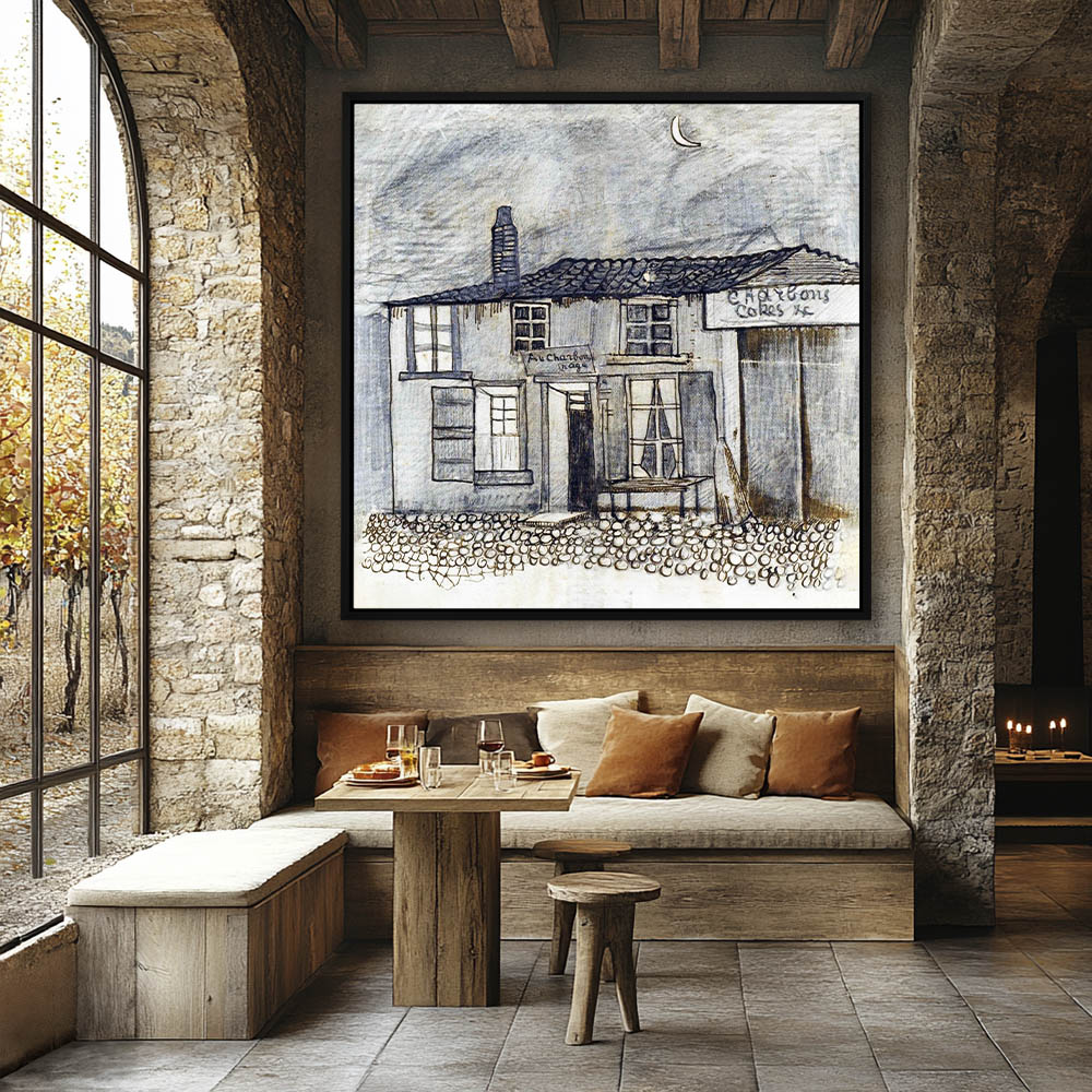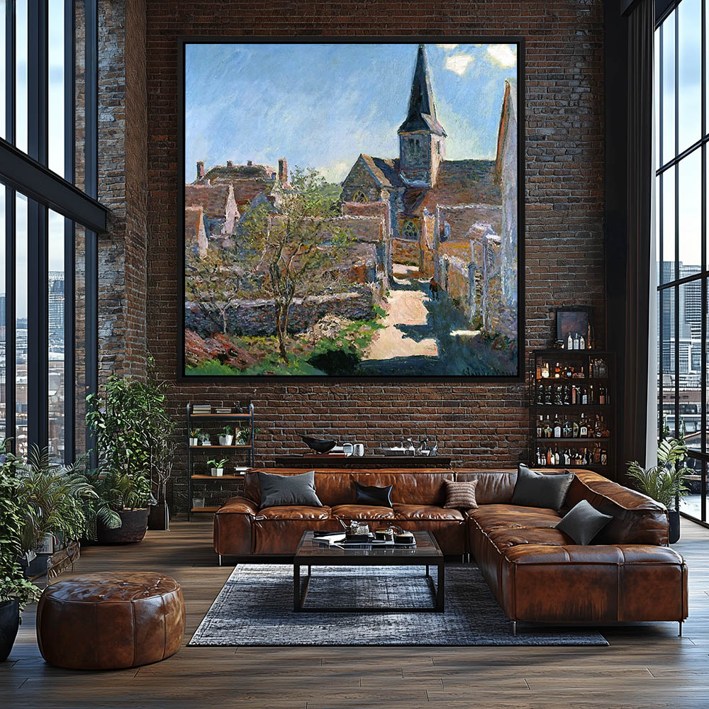 Vintage Landscape Paint of a Church, Bennecourt Chapel