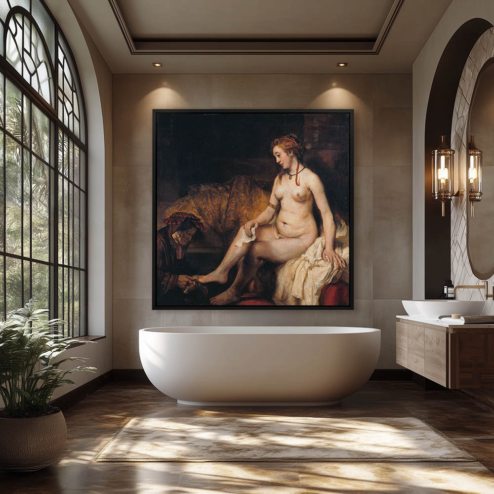 Realism Vintage Religious Painting of a Biblical Story with a Nude Bathsheba