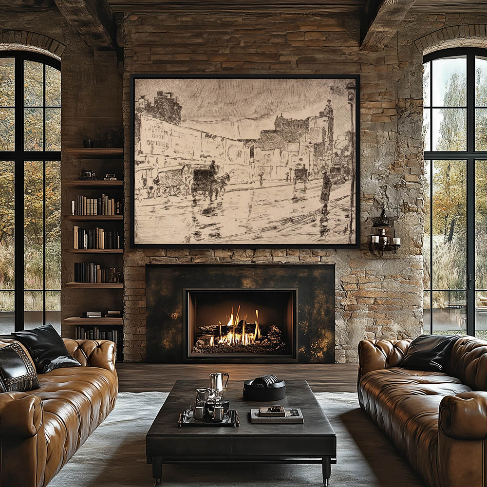 Drawing of a rainy New York street scene