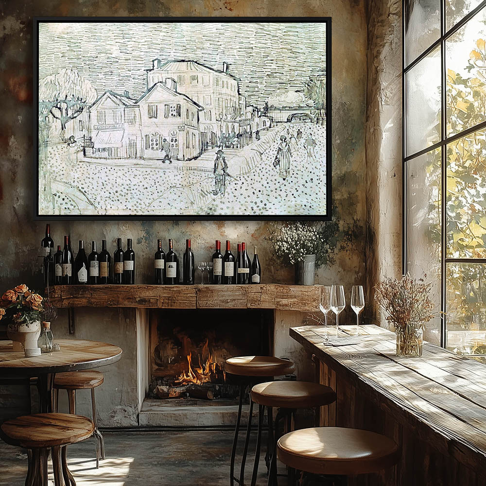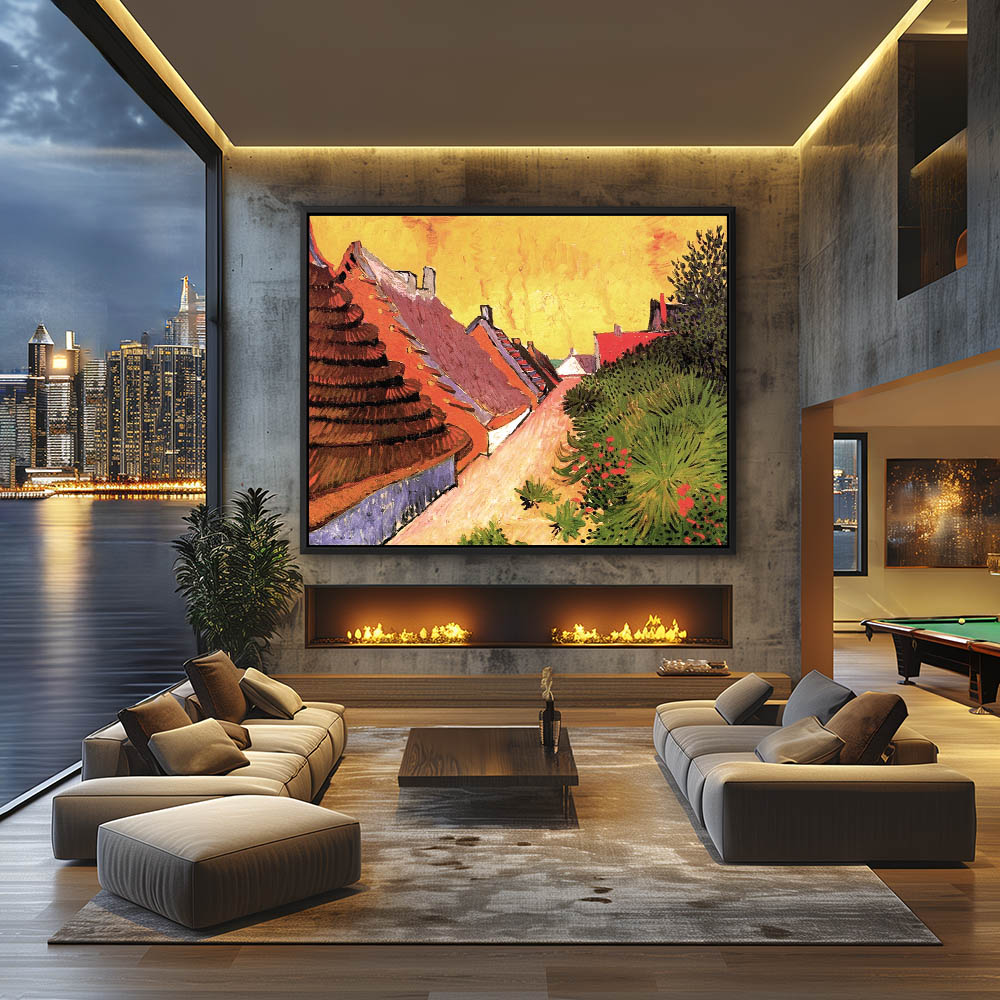Impressionist Paintingh of a City Street Lined with Houses