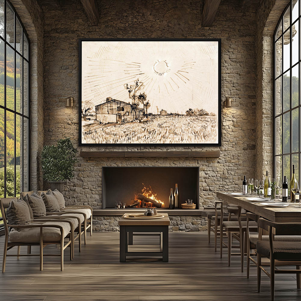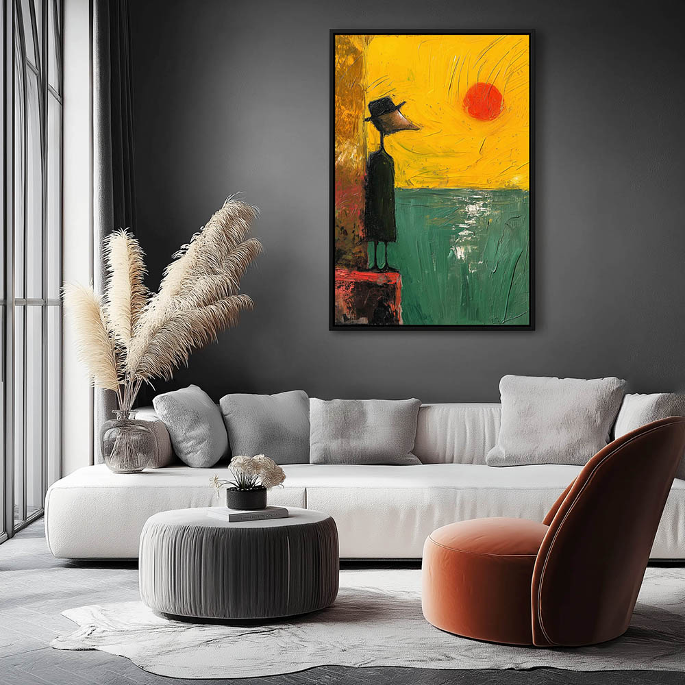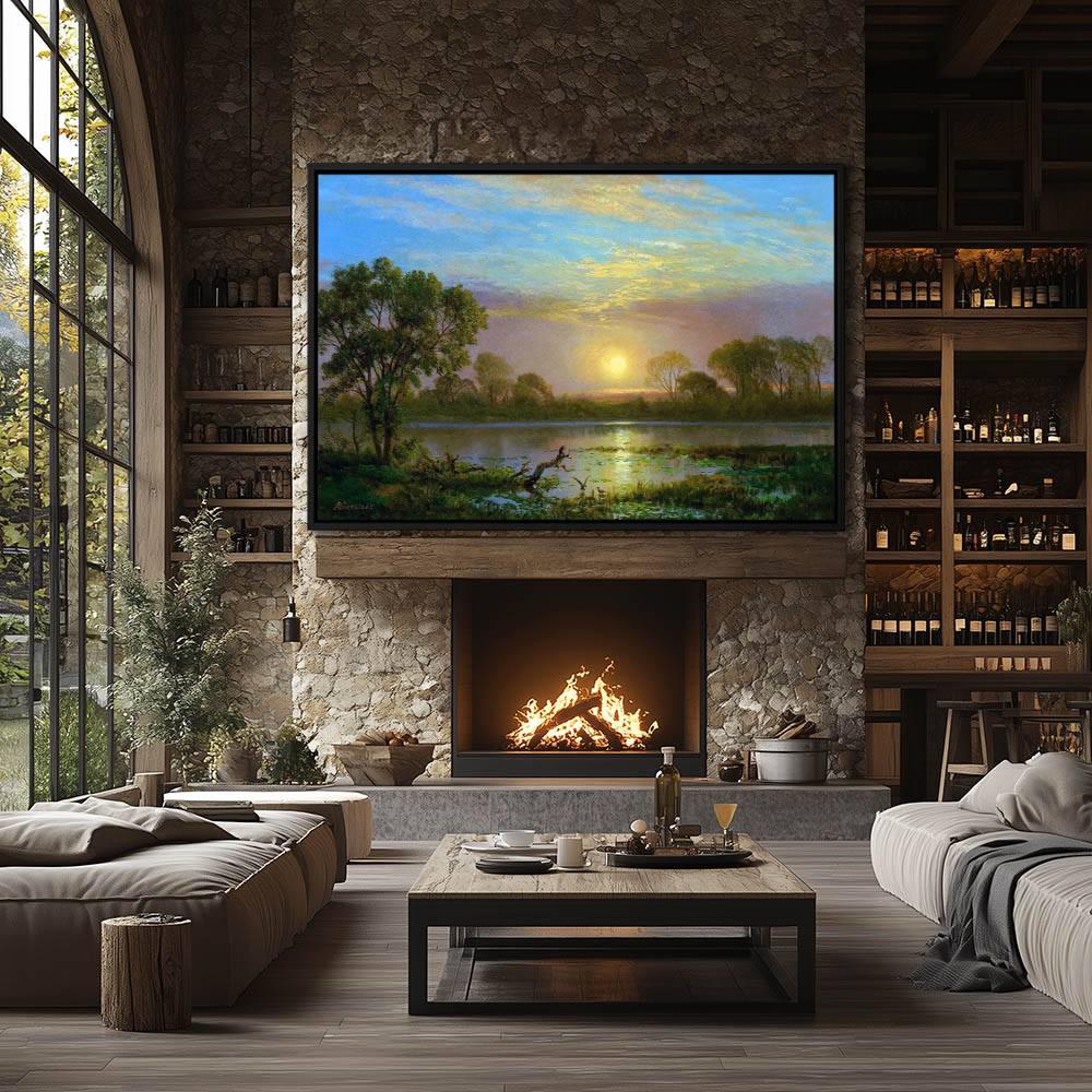 Coastal Painting with Figures Fishing in Boats at Sunset
