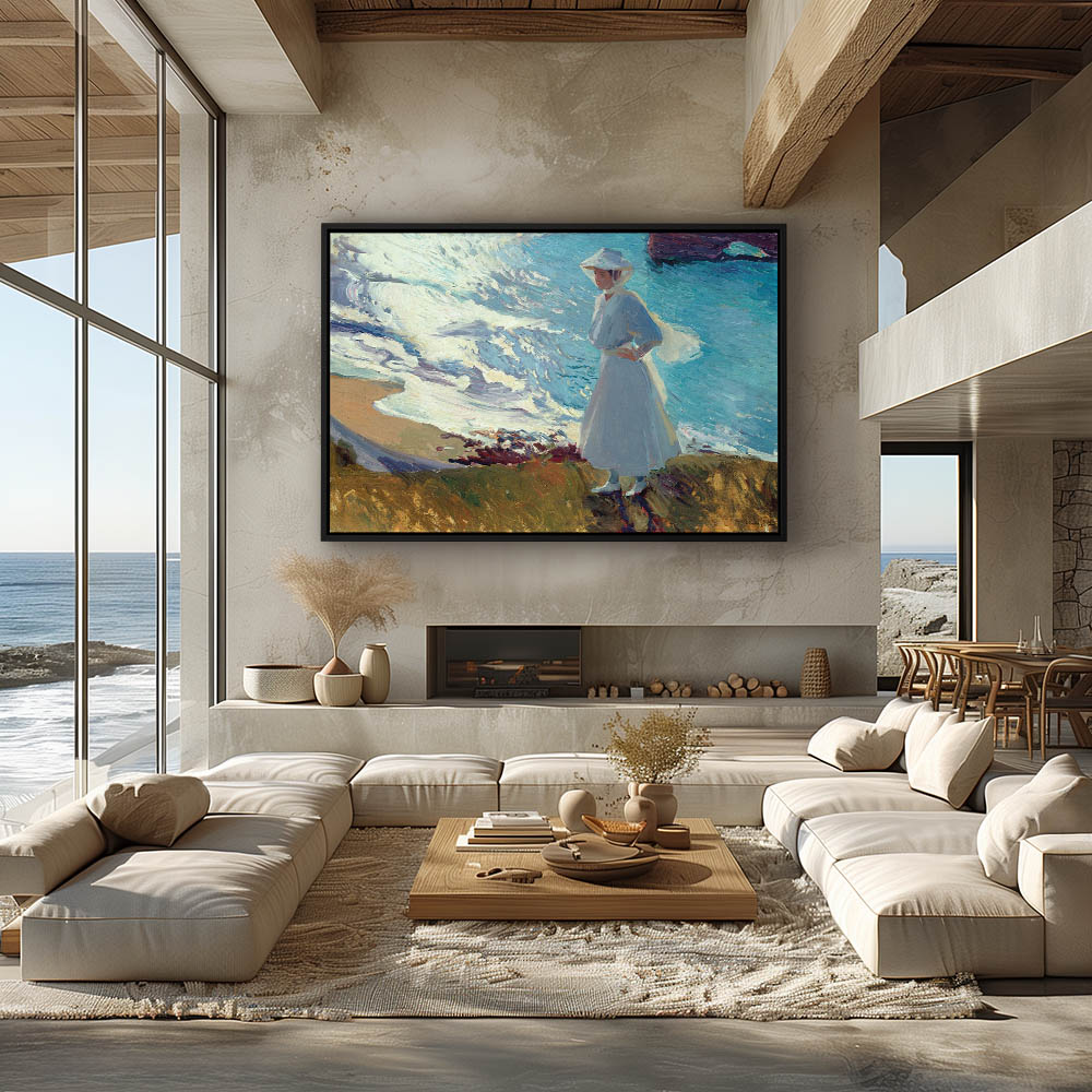 Woman in white walking along the beach