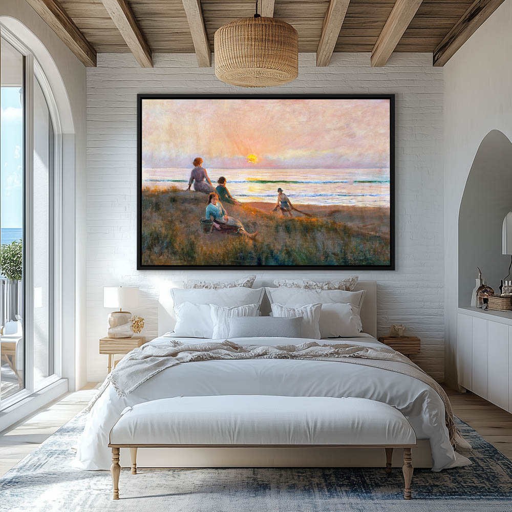 Coastal Painting with Figures Enjoying the Sunset on the Beach