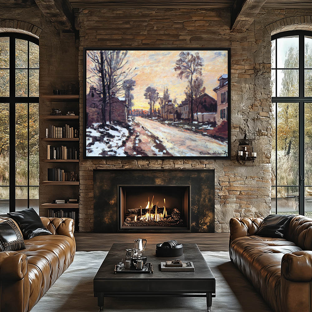 Vintage Cityscape Scene at Sunset with Melting Snow