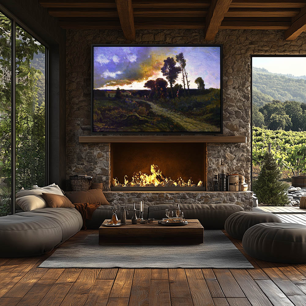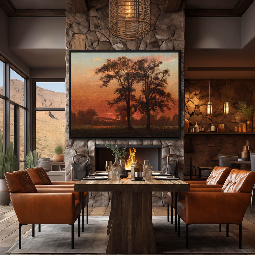 Landscape Painting with Farm House at Sunset