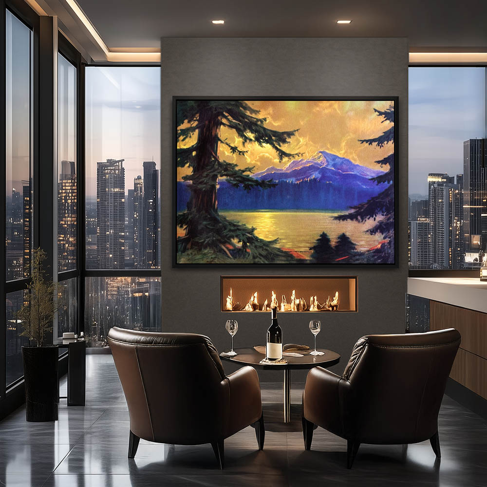 Forest Sunset in Canvas Print is Curators Choice for this Beautiful Landscape Painting, Choose from a wide variety of sizes and formats, including metal wall art, metal prints, vinyl wall art, vinyl prints, peel-and-stick vinyl, vinyl wall art, vinyl wall peel, framed wall art, framed prints, fine art prints, poster art, poster wall art, poster prints, stretched canvas, stretched canvas wall art, and framed canvas wall art with floater frames. Available frame colors include black, white, and brown, offering options to match any style.