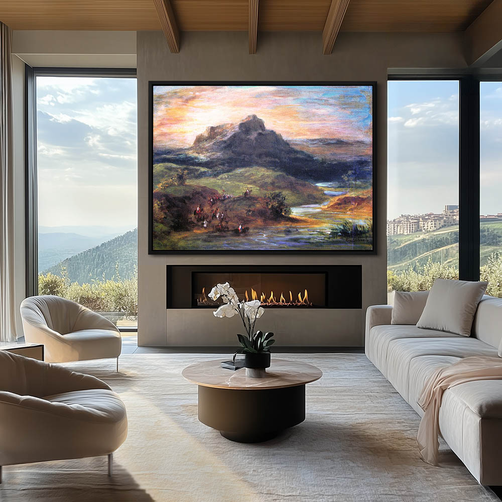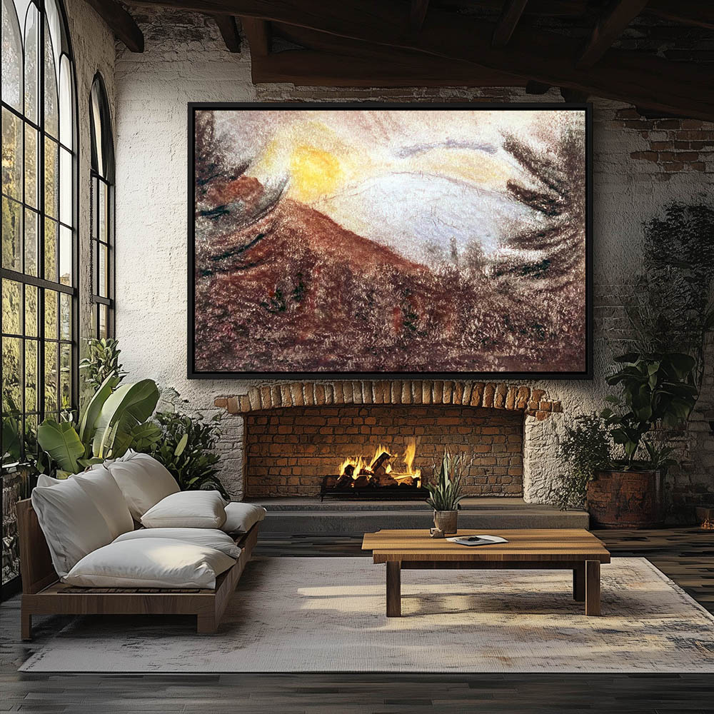 Abstract Landscape Painting with a Mountain at Sunset