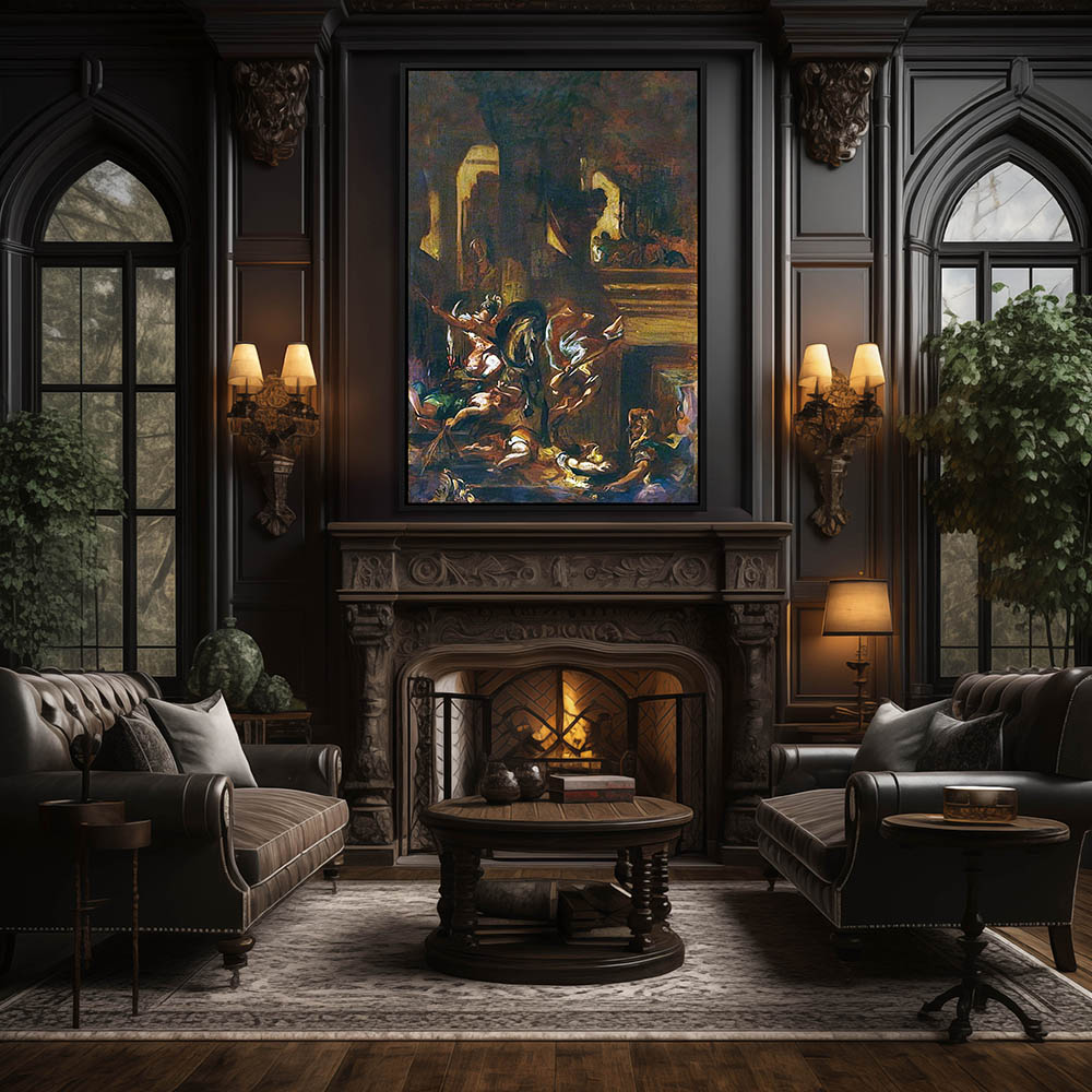 Vintage Figurative Painting of the Expulsion of Heliodorus from the Temple