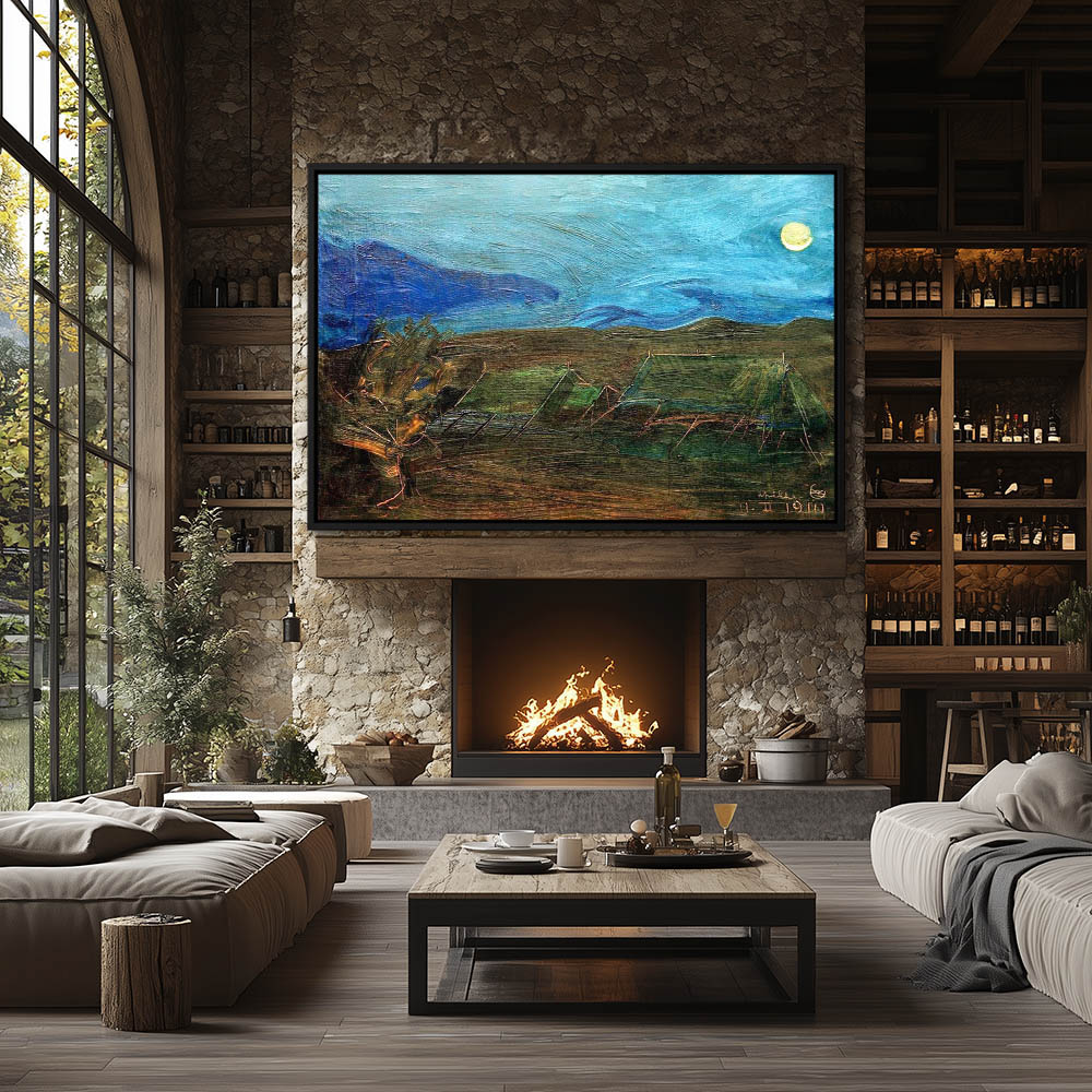 African Landscape Painting with Tents in the Moon Light
