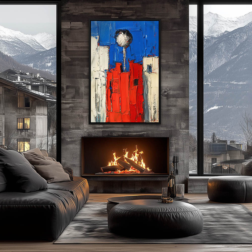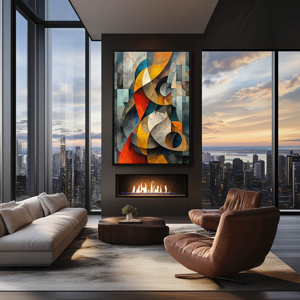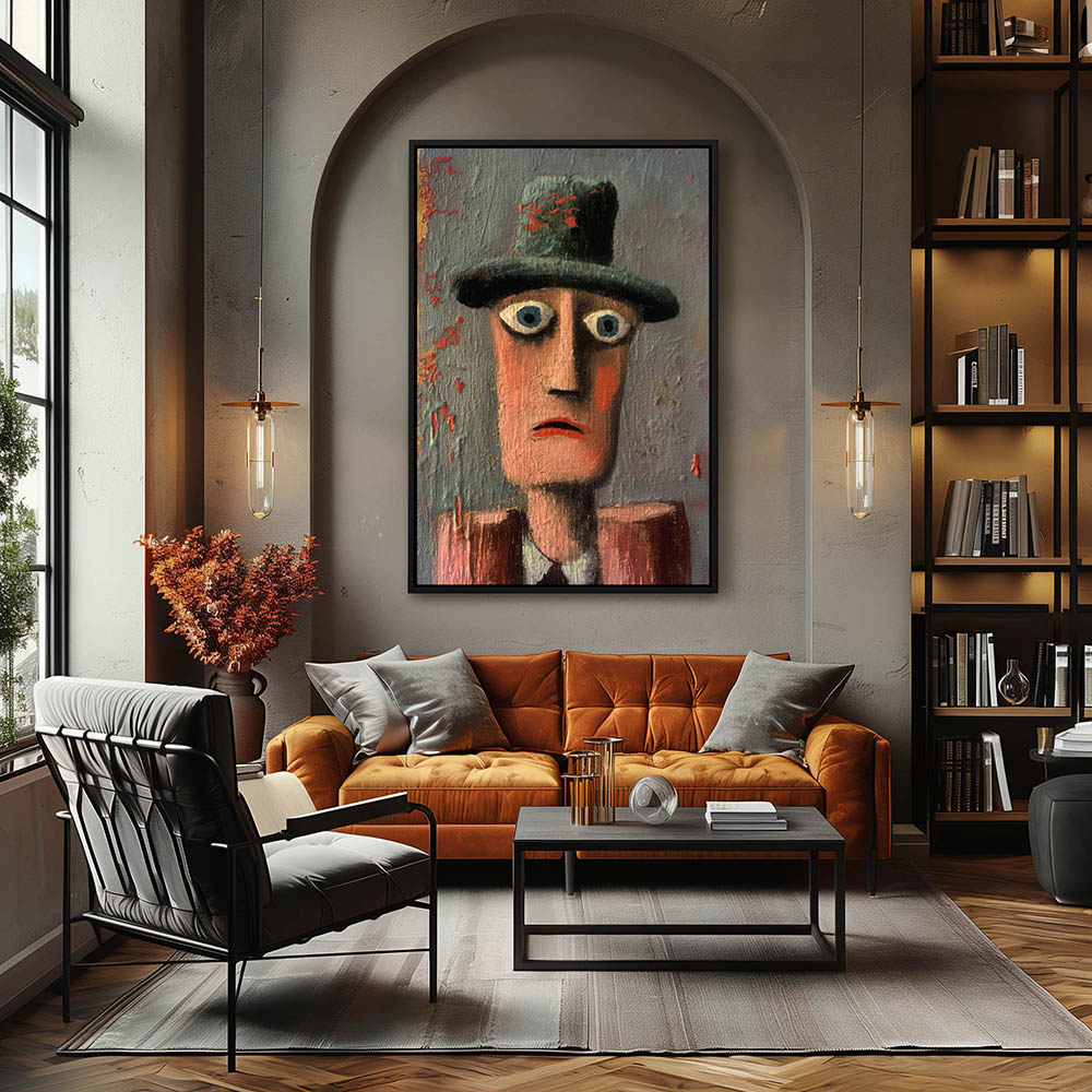 Colorblocked mask with narrowed chin and eyes cut to the side