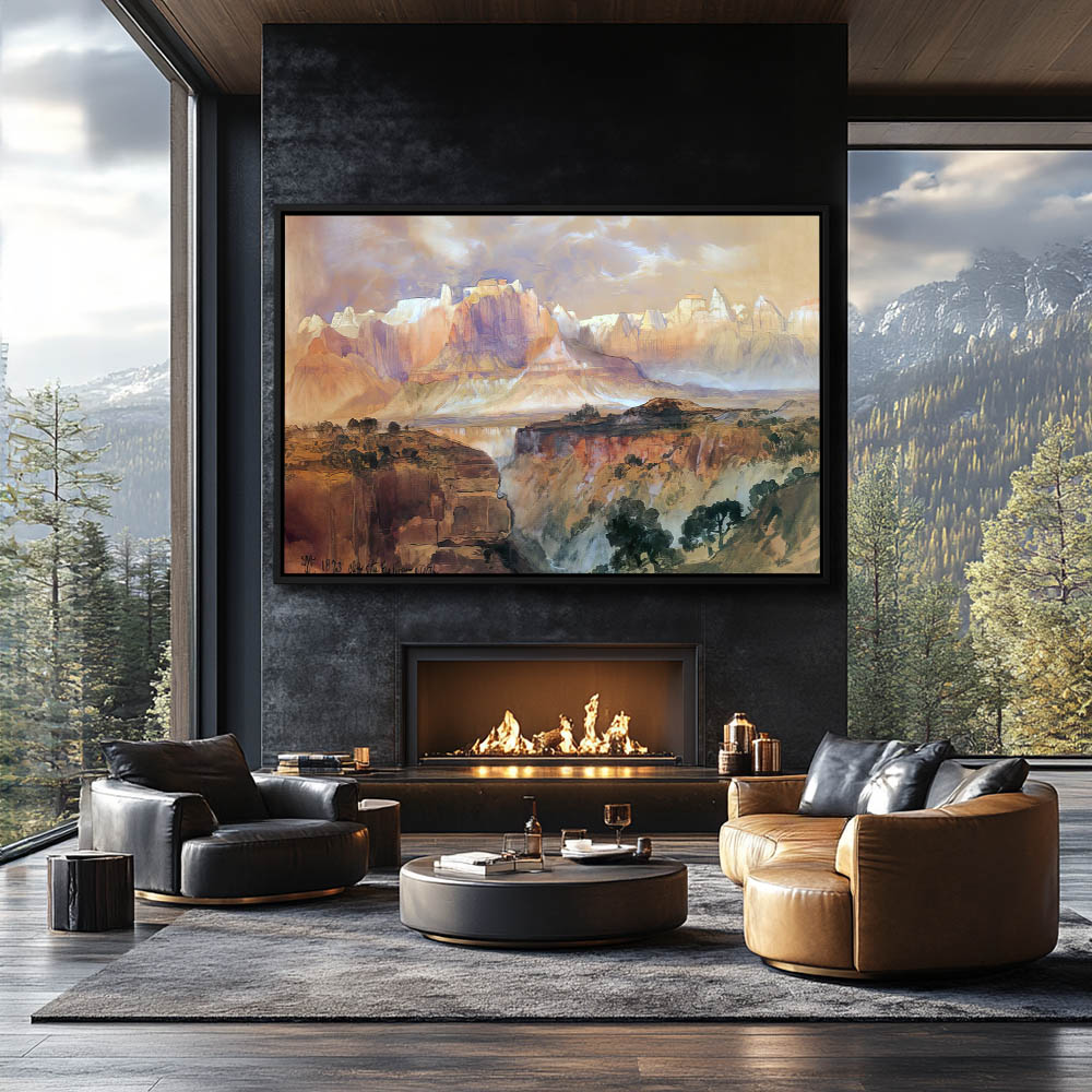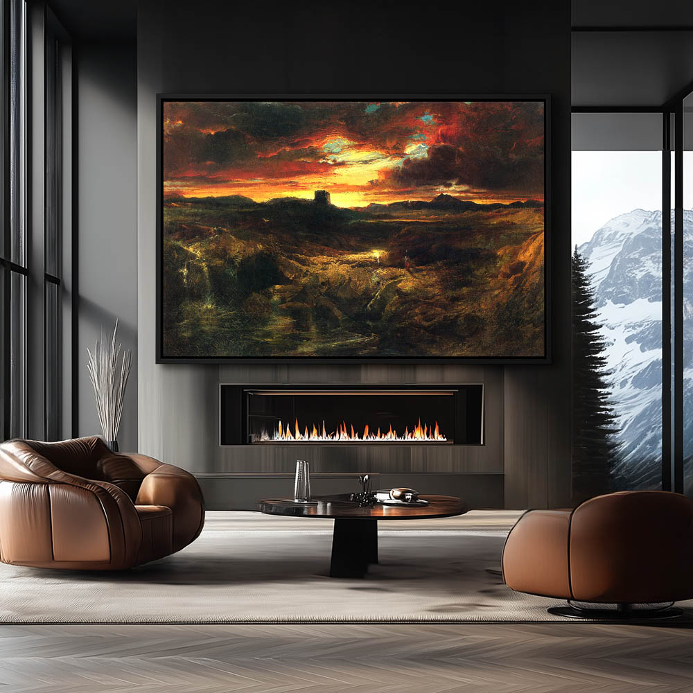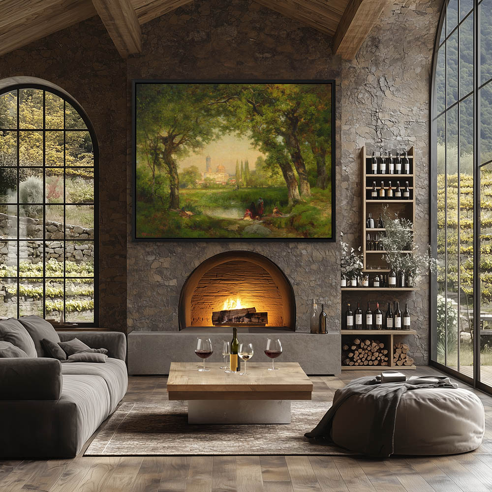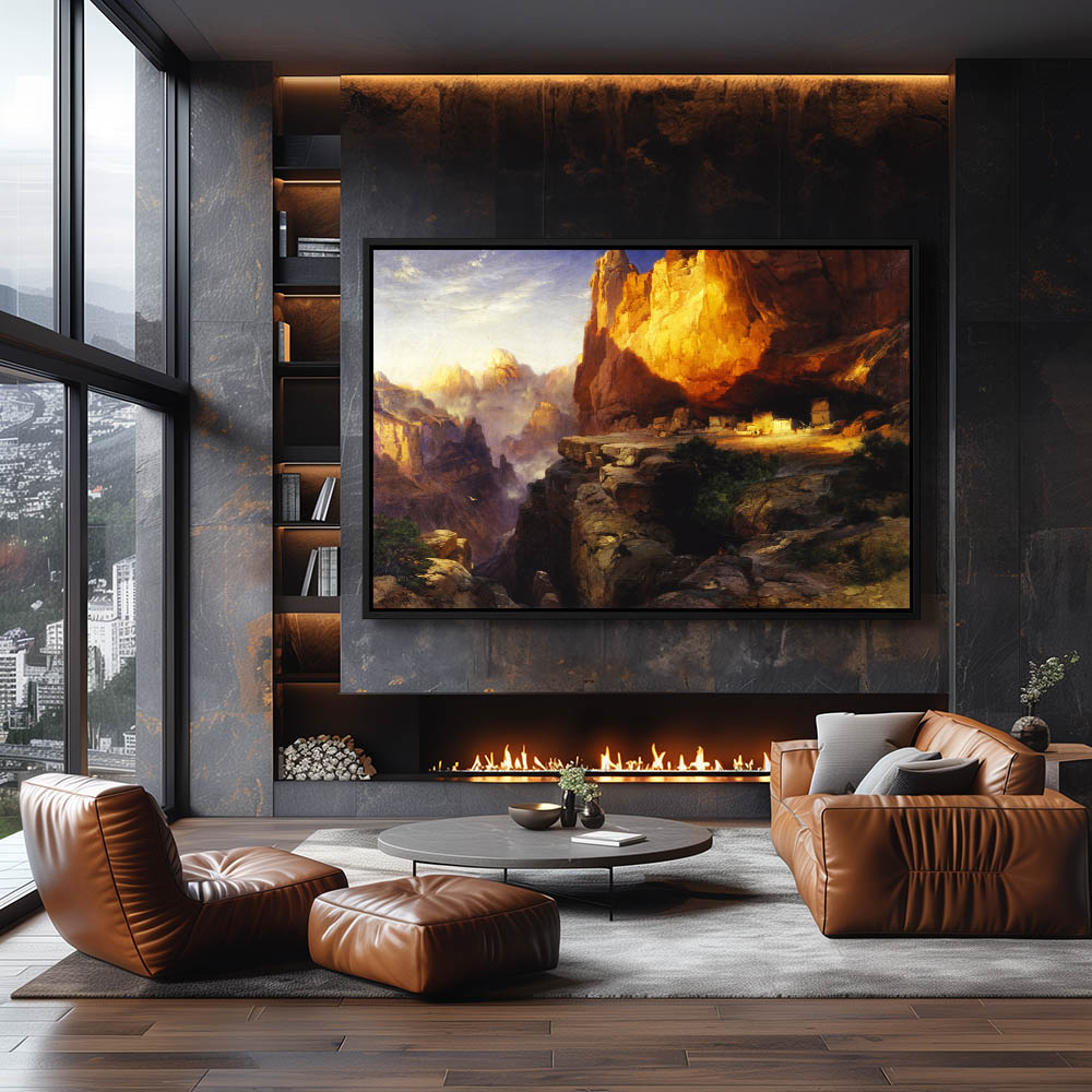 From $29.970 out of 5Landscape with Indians on hourseback at the riverbank, a village and mountains in the distance.