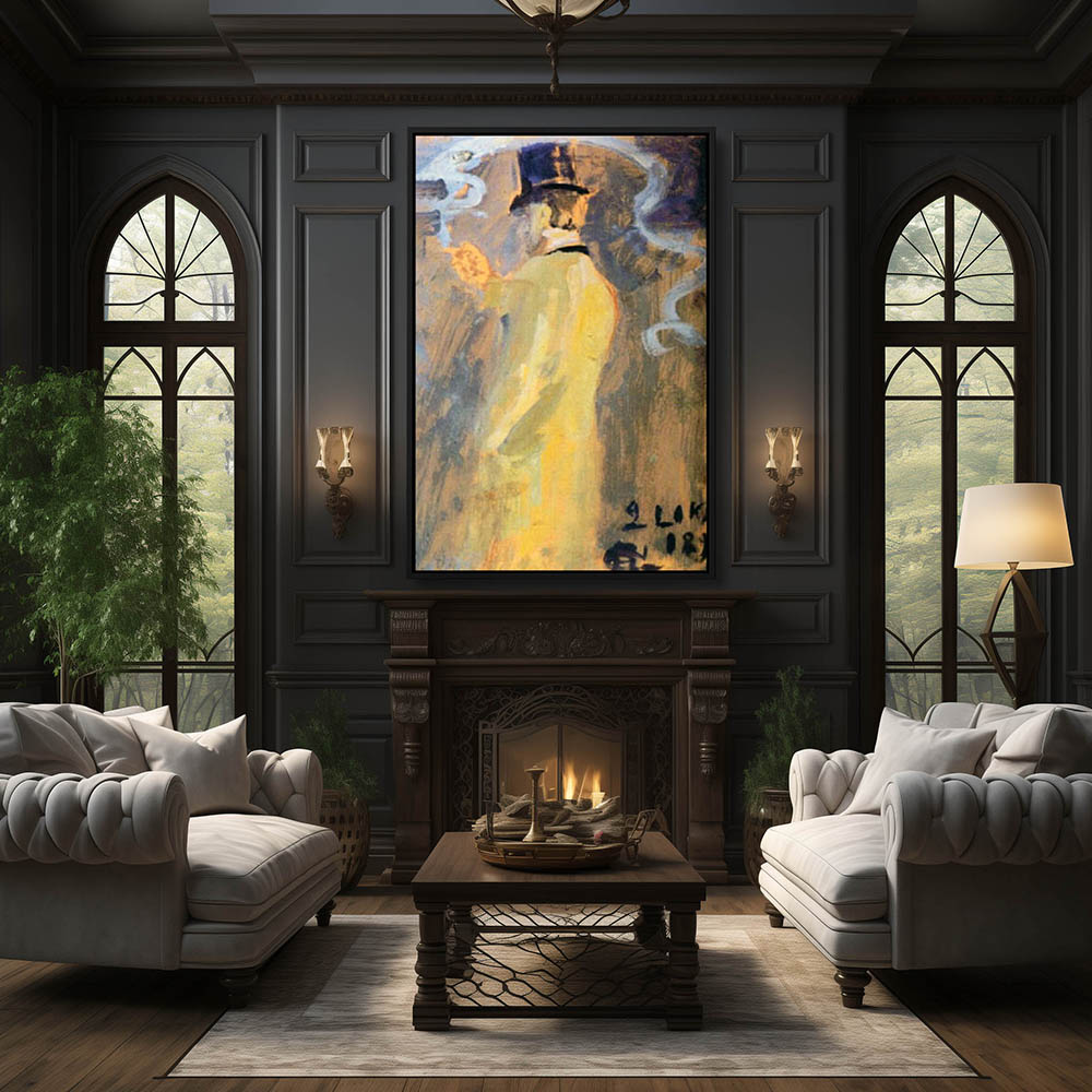 Figurative Portrait Painting of a Man in a Top Hat Smoking