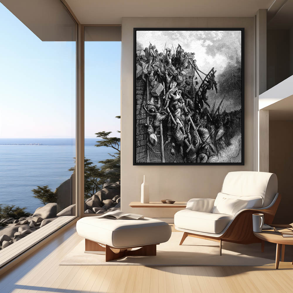 Vintage Etching of The Army of Priest Volkmar and Count Emocio attack Merseburg