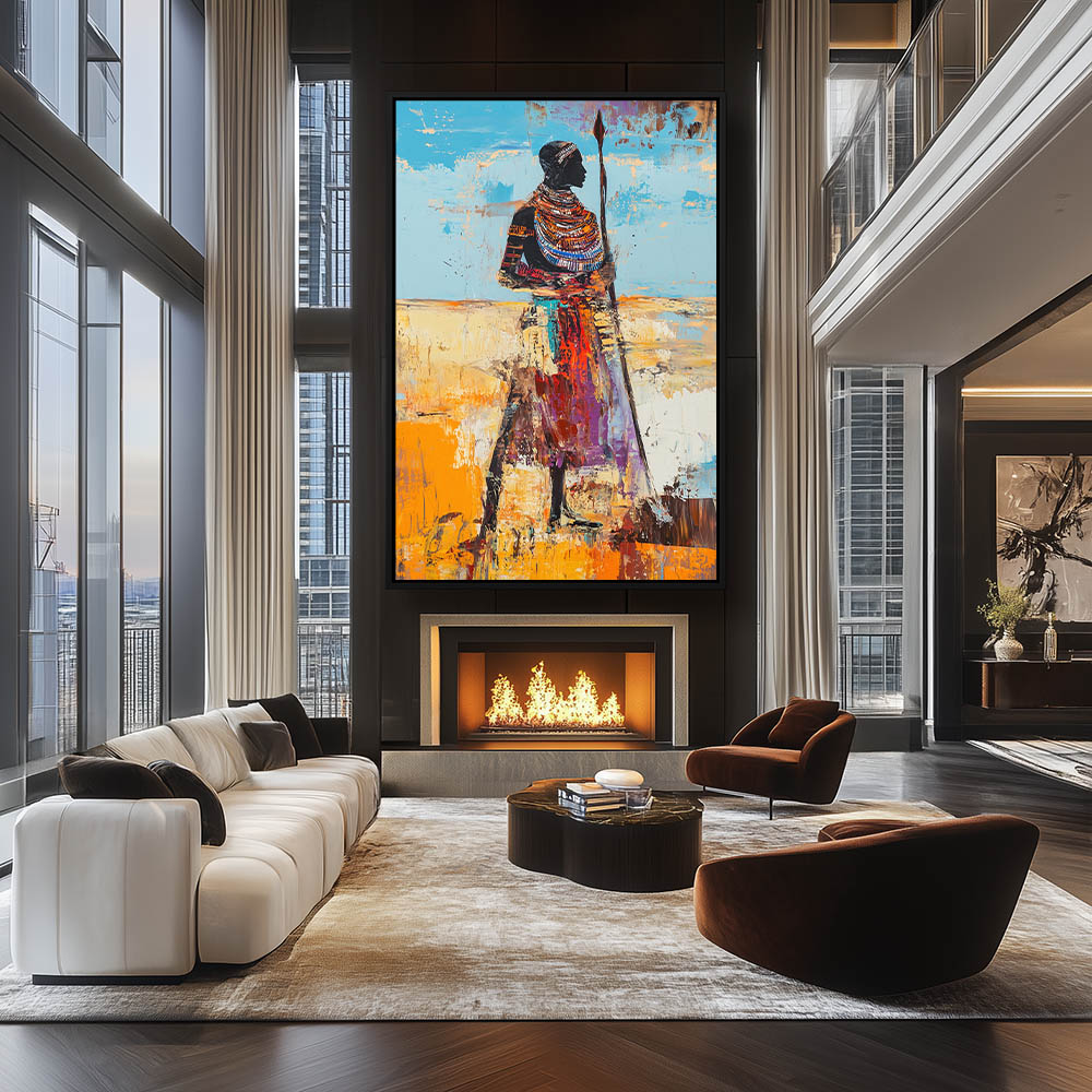 Abstract Painting of an African Warrior in Tribal Wear