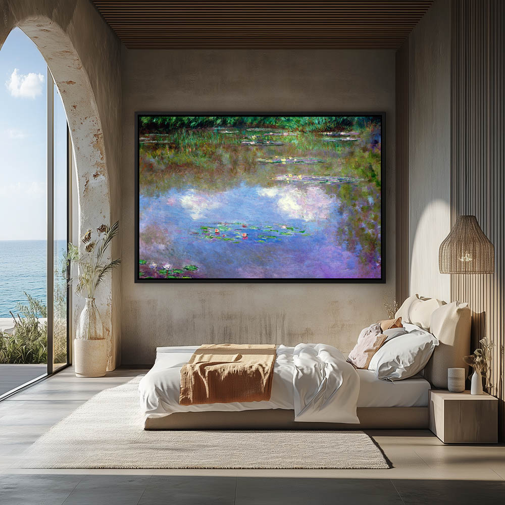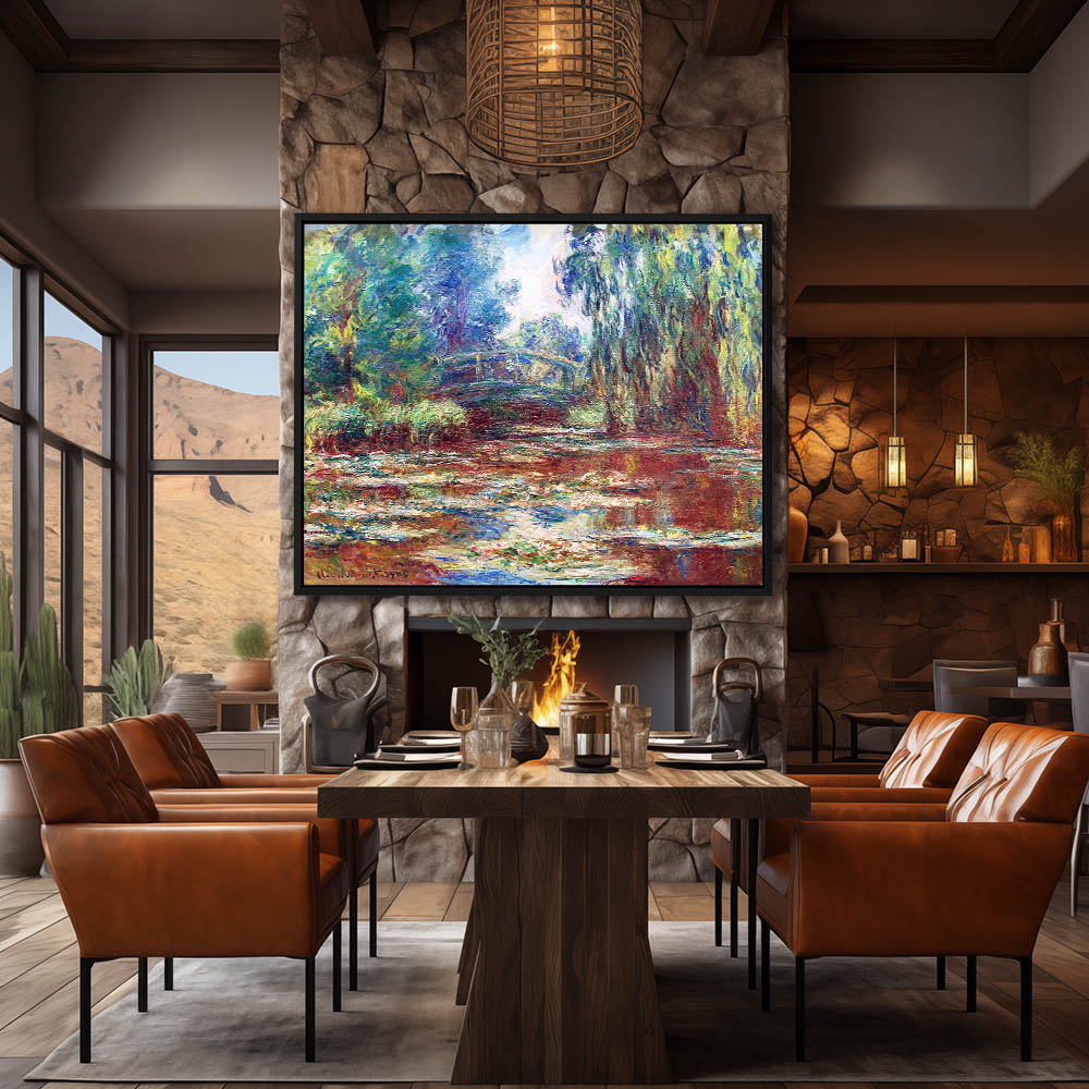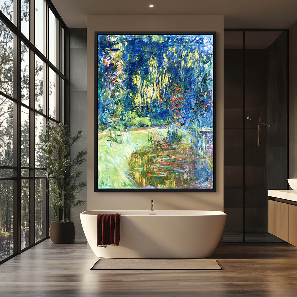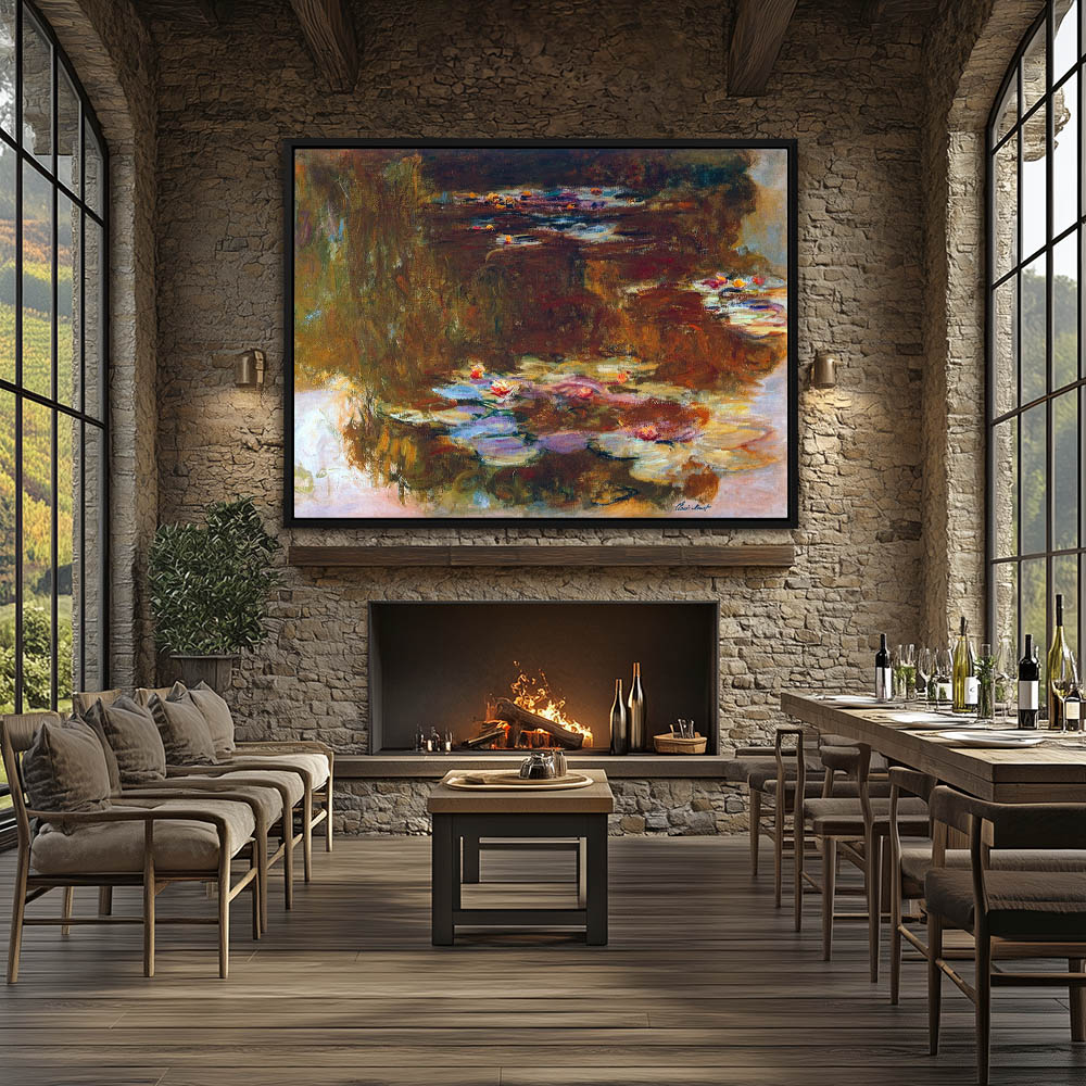 Vintage Pond Painting of Watter Lillies with Flowers at Giverny