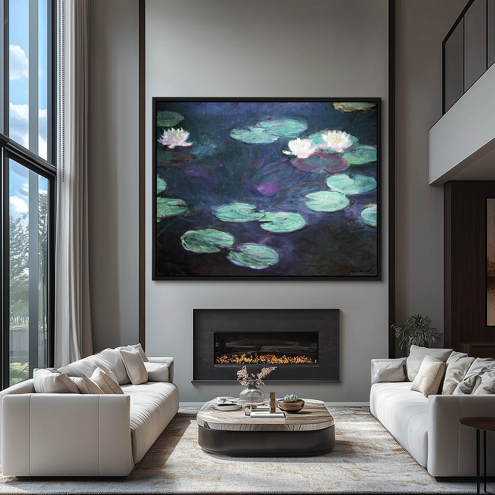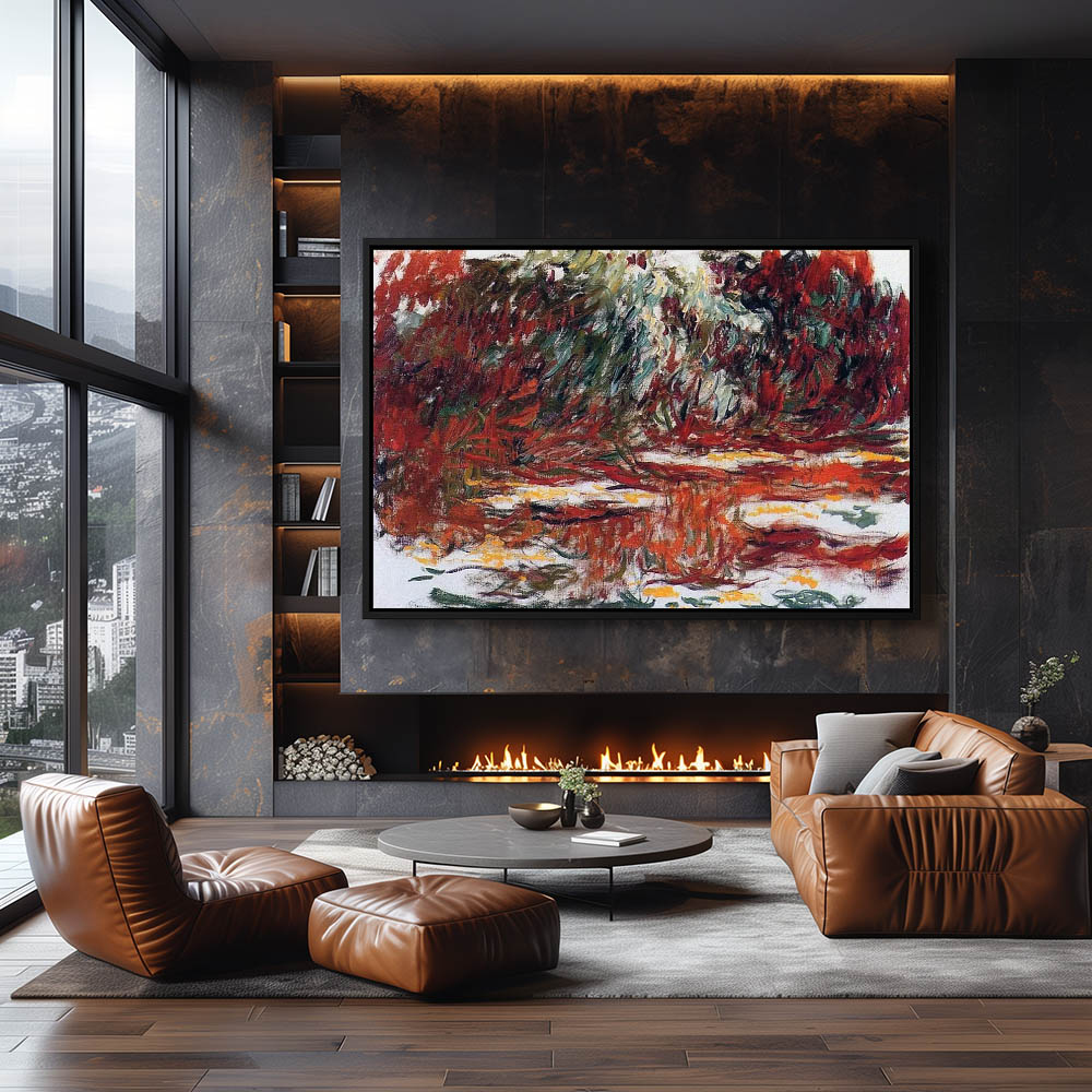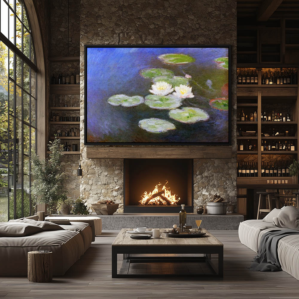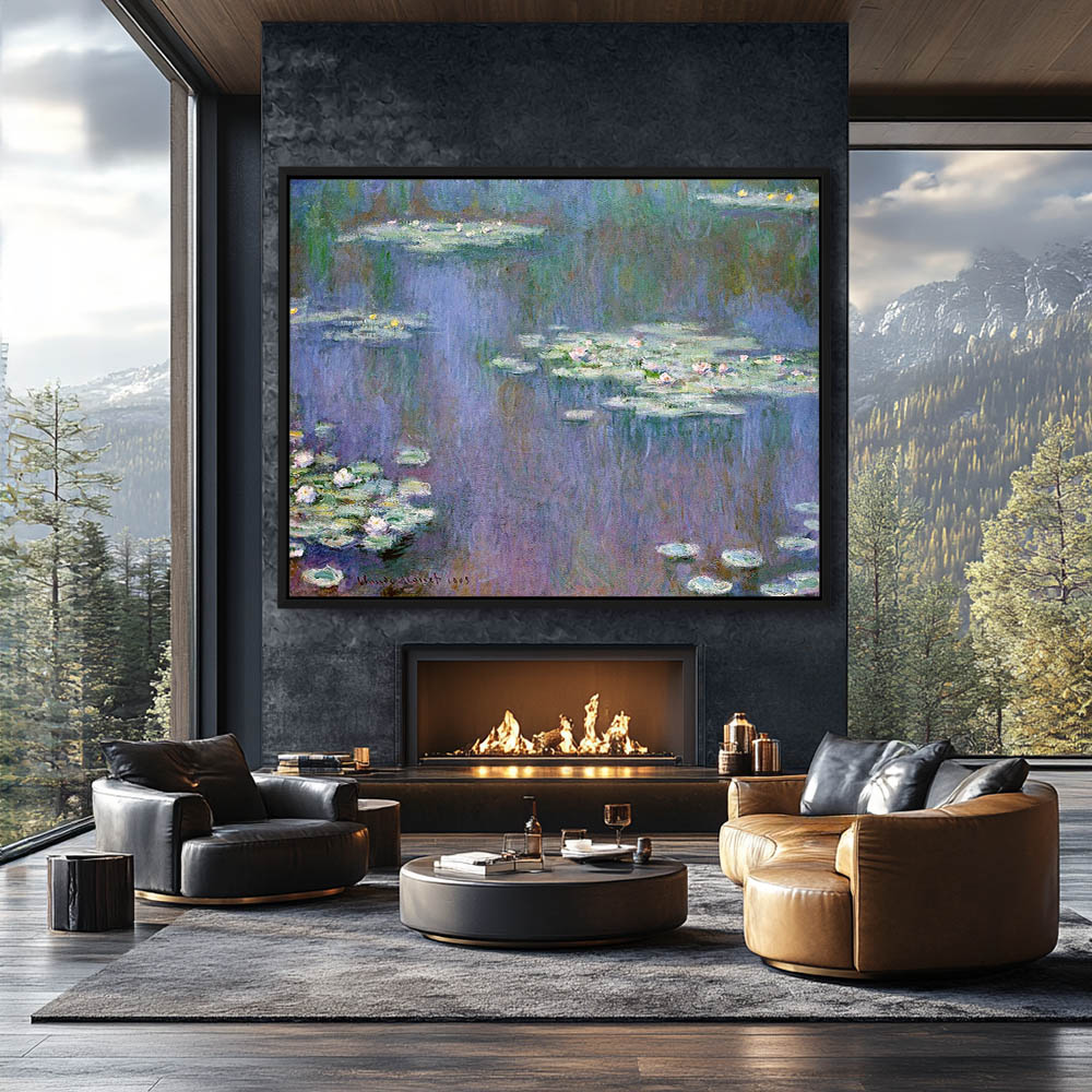 Vintage Pond Painting of Watter Lillies with Flowers at Giverny