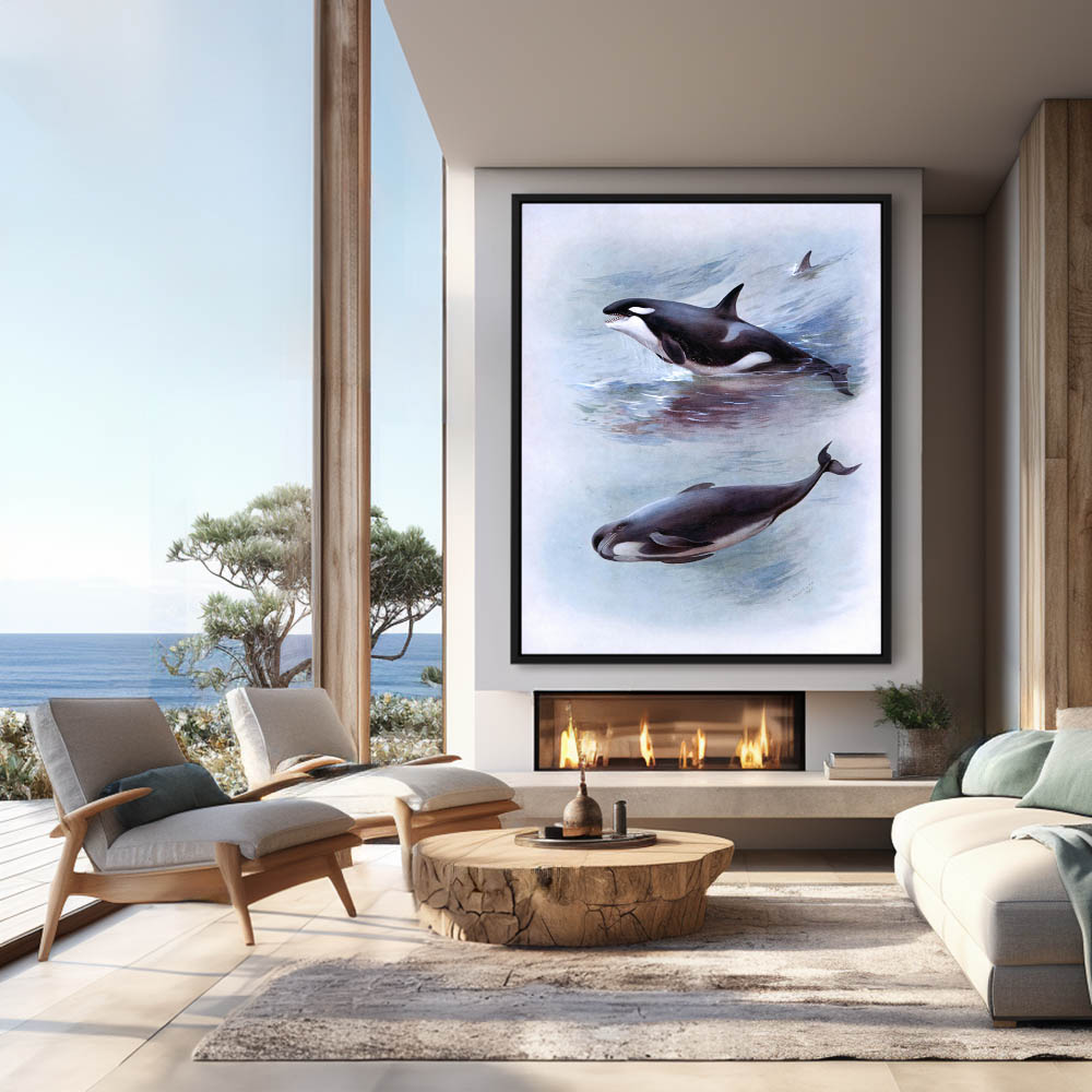Painting of Killer Whales and Pilot Whales in the Ocean