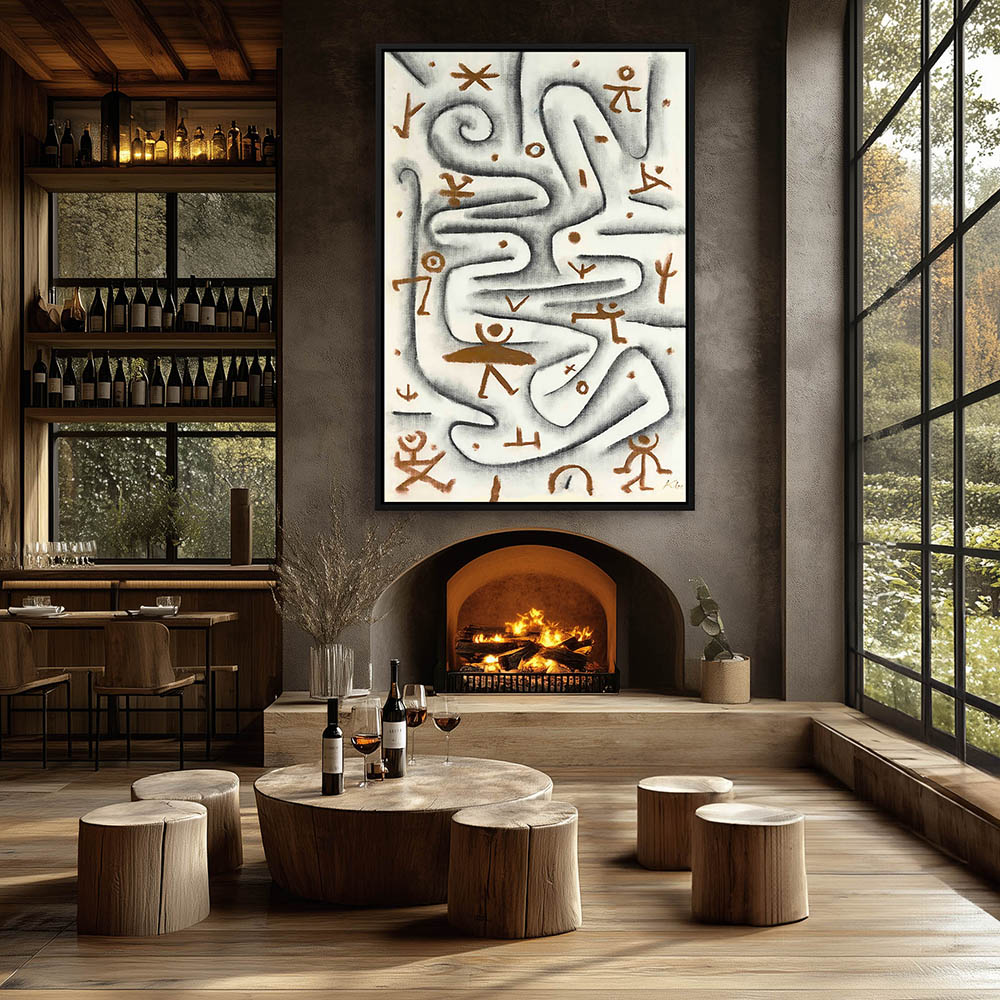 Abstract landscape with various pictographs