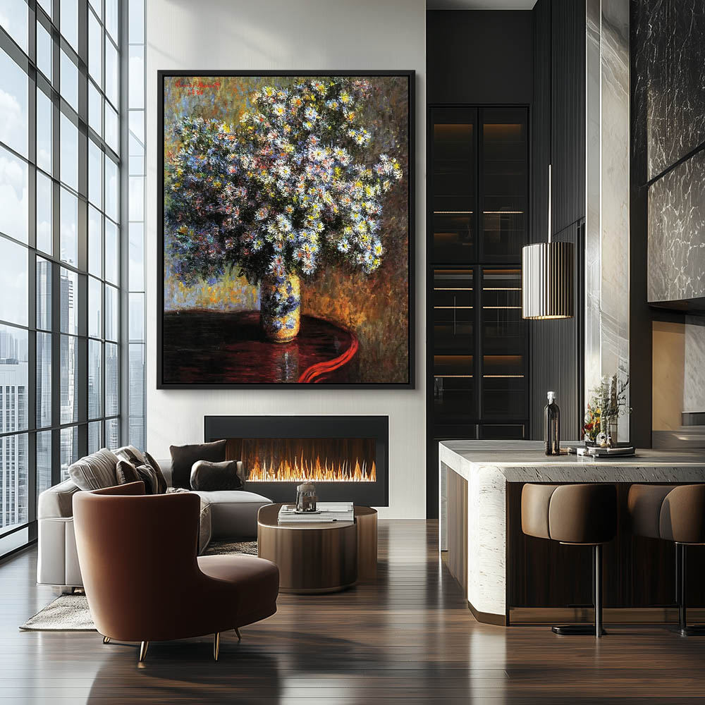 Vintage Still Life Painting of a Vase of Asters on a Table