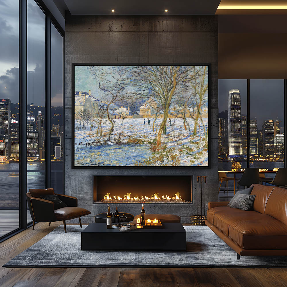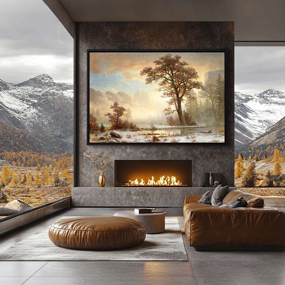 Vintage Landscape Painting with a Frozen Pond and Snow