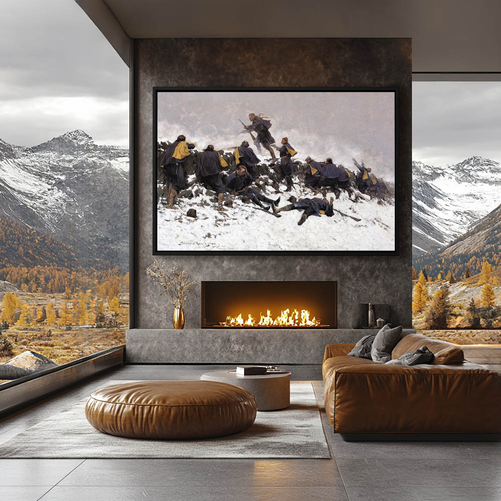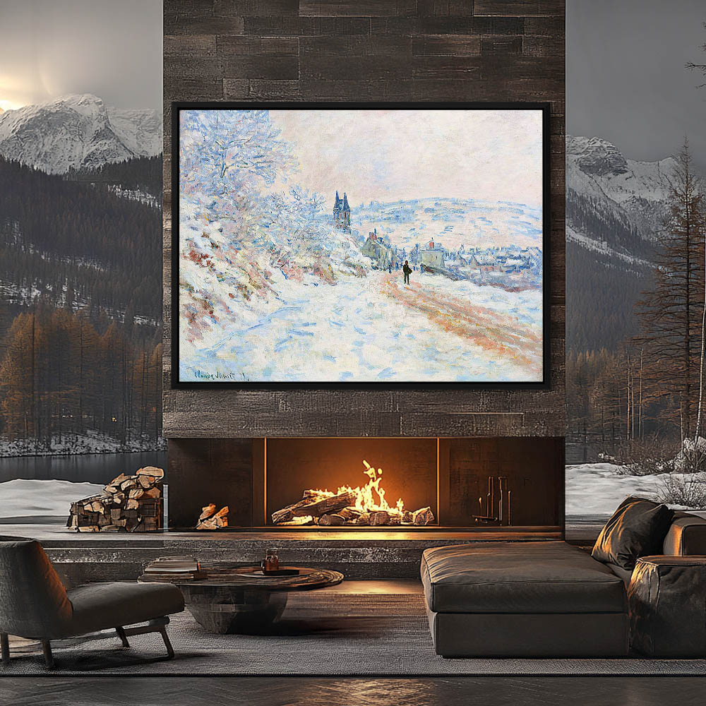 Vintage Landscape Painting of a Road into the Village Under Snow