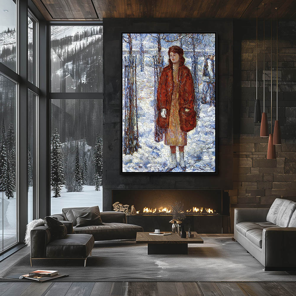 Woman in a red coat in the snow
