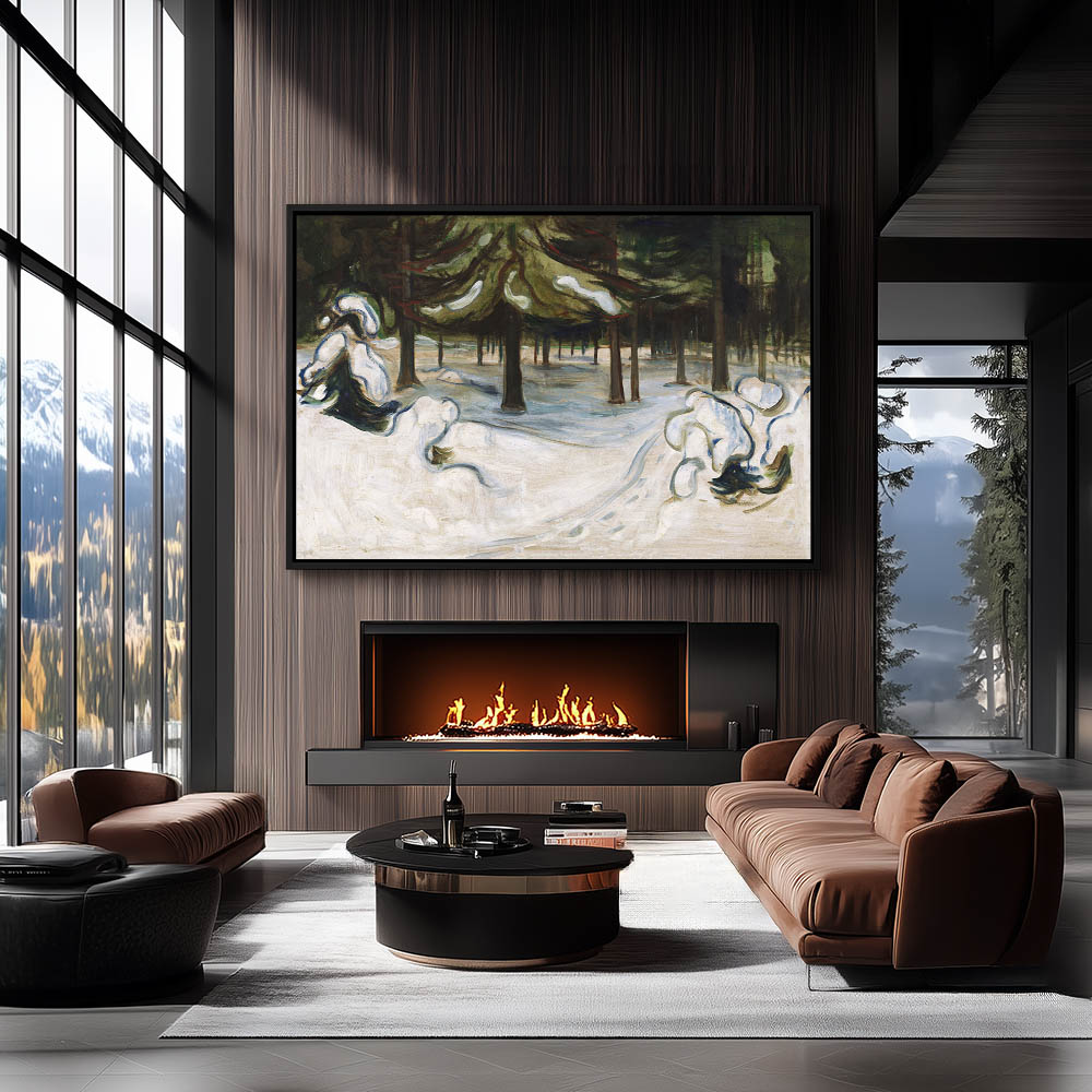 Snowy Frozen Landscape Painting with Wigeon Ducks on the Ice