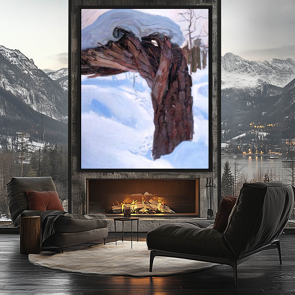 Winter Landscape Painting with Snow and Broken Tree