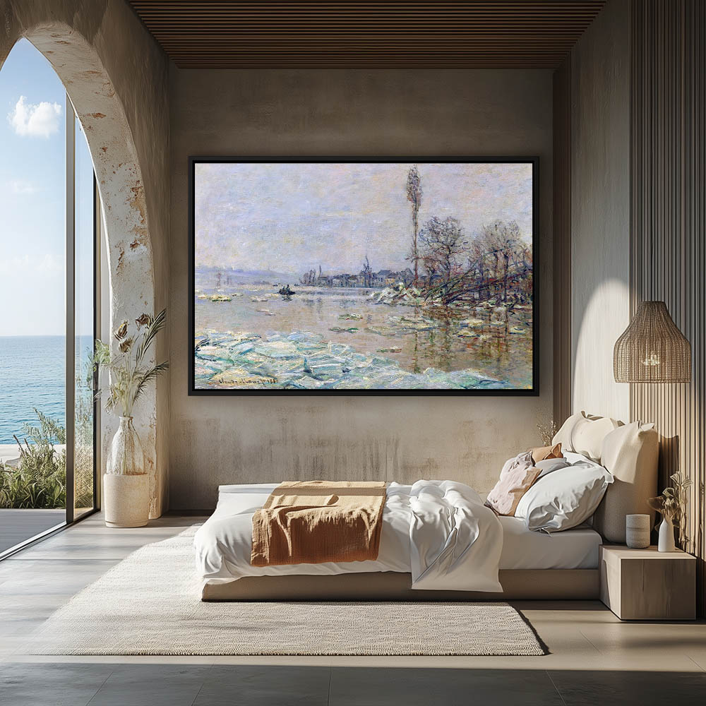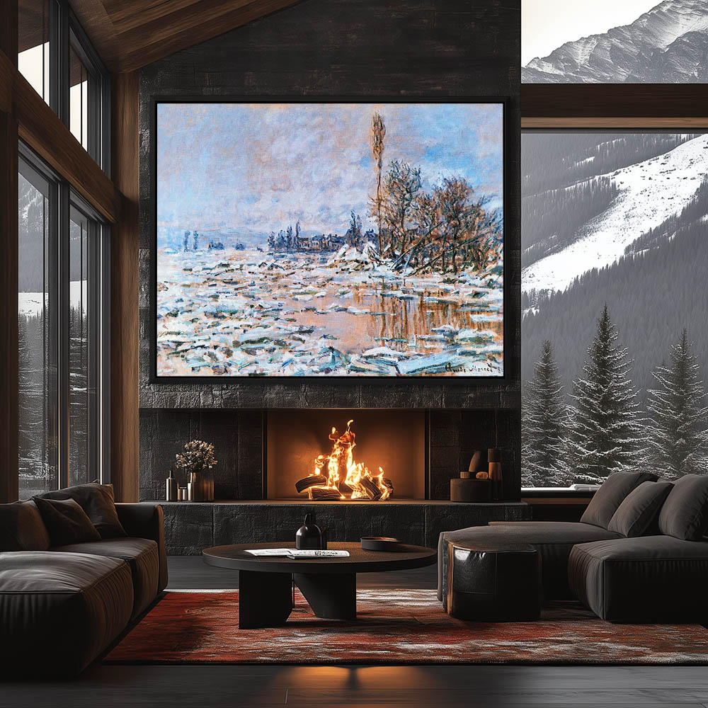 Vintage River Landscape Painting of the Ice Brackup in the Water