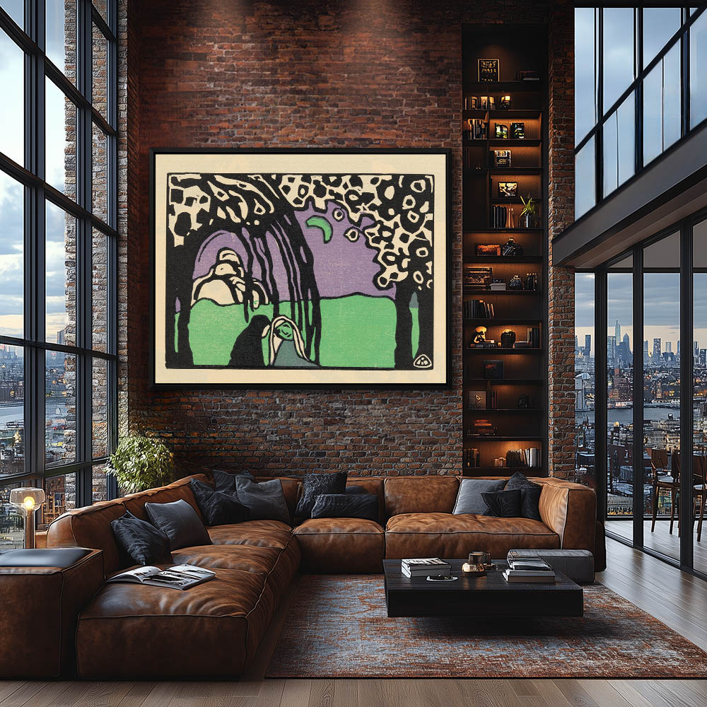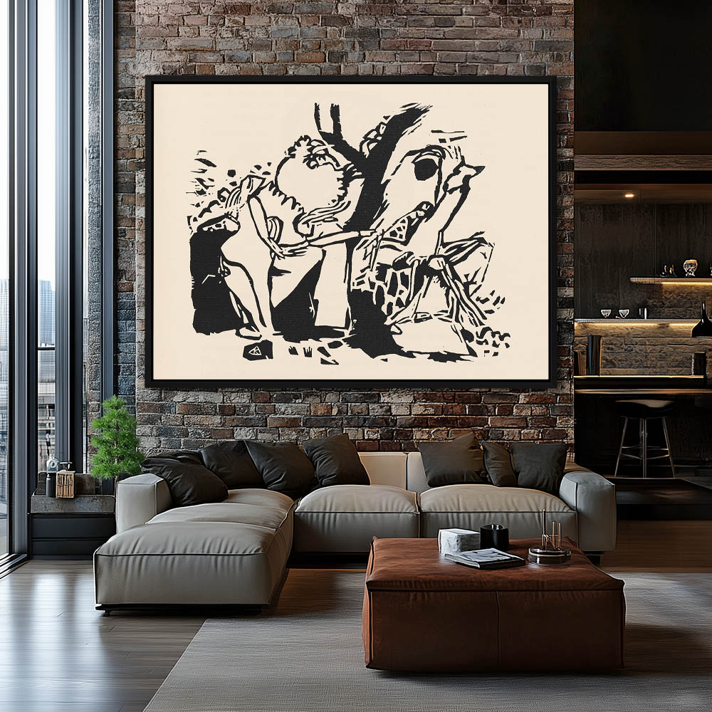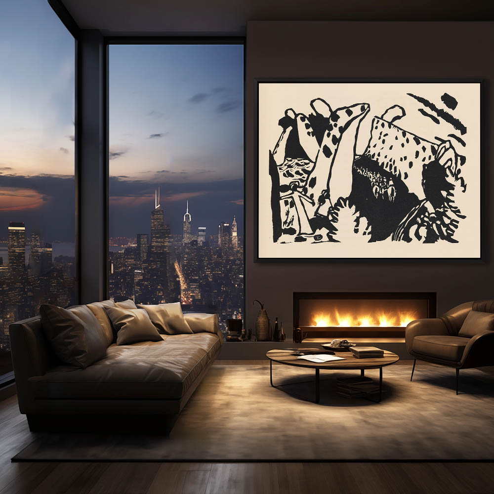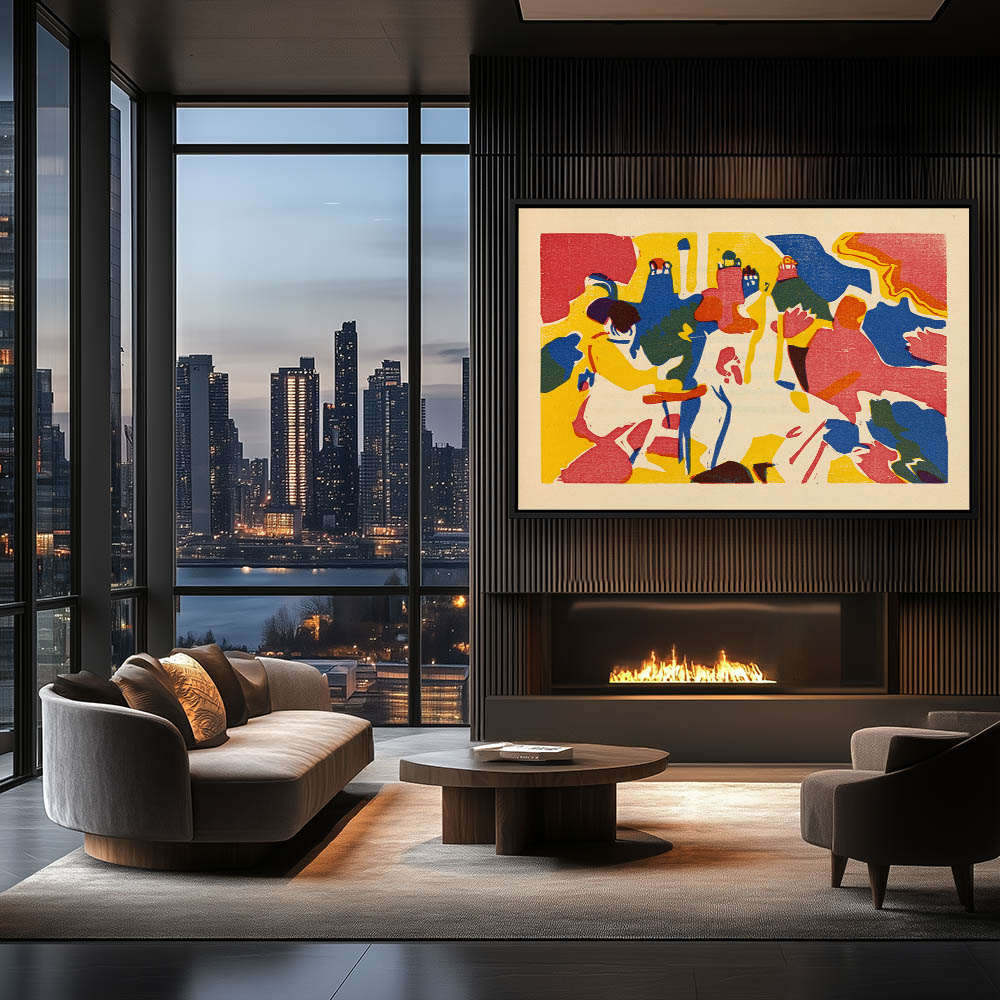 Figures on horseback in an abstract landscape