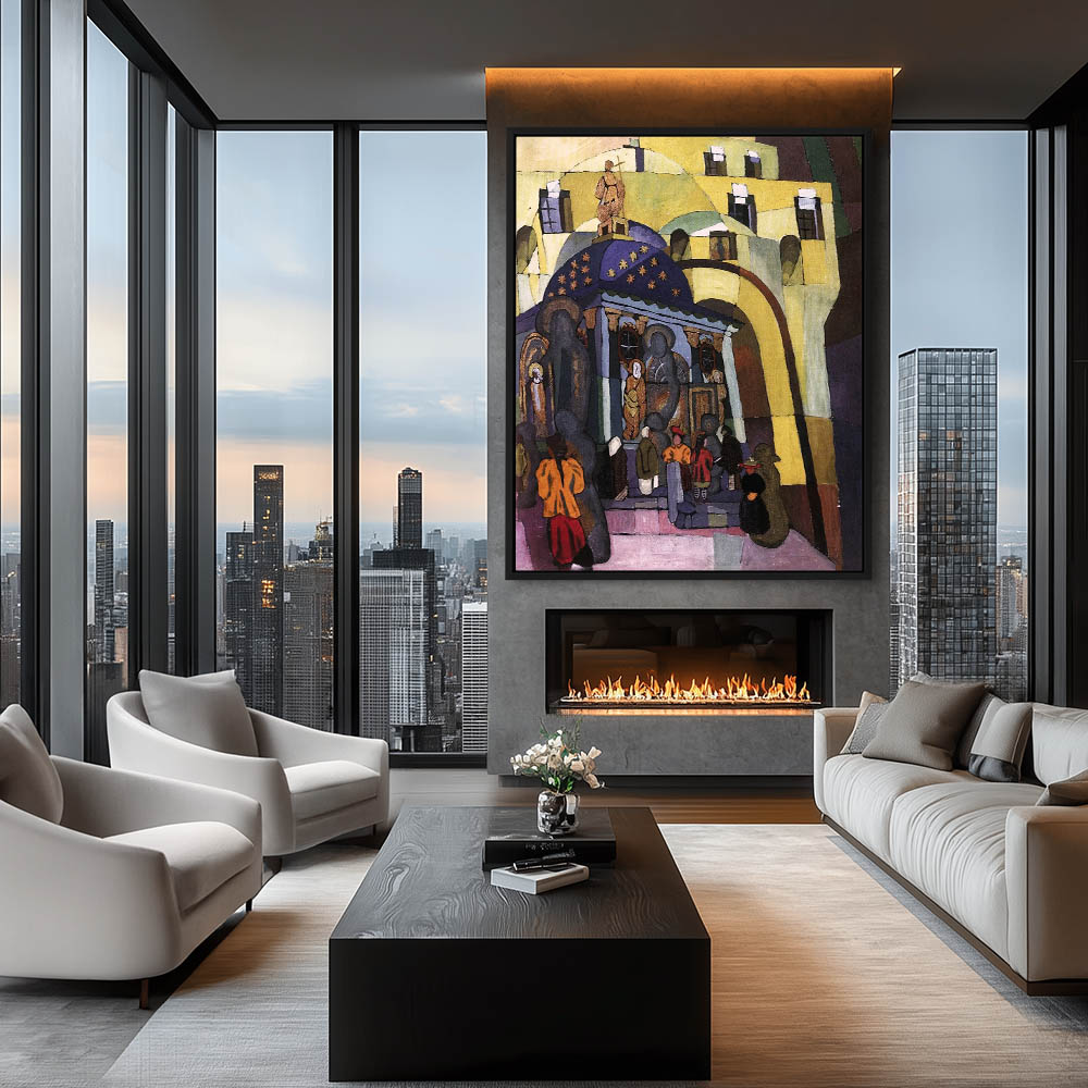 Figures at the front of a building on Iverskaya Street