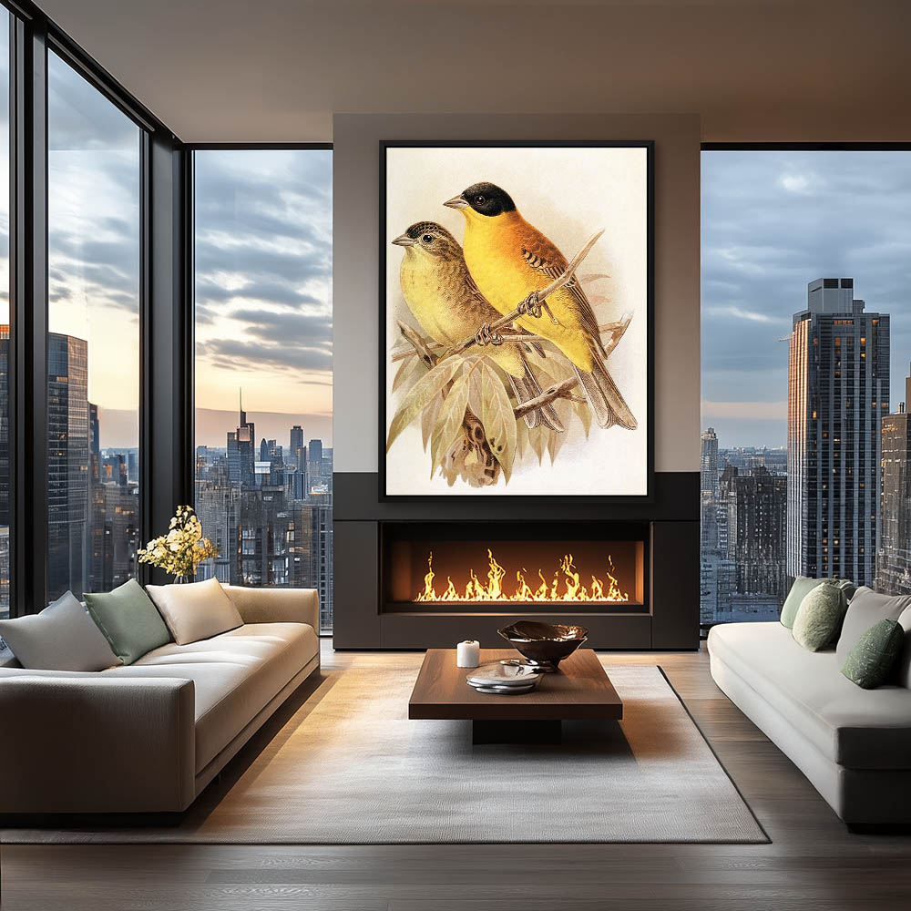 Pasinting of Black Headed Bunting Birds on a Limb