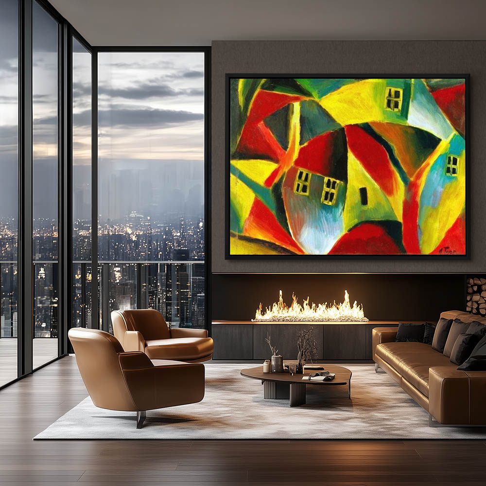 Abstract Landscape Painting of a Cityscape in Cubism