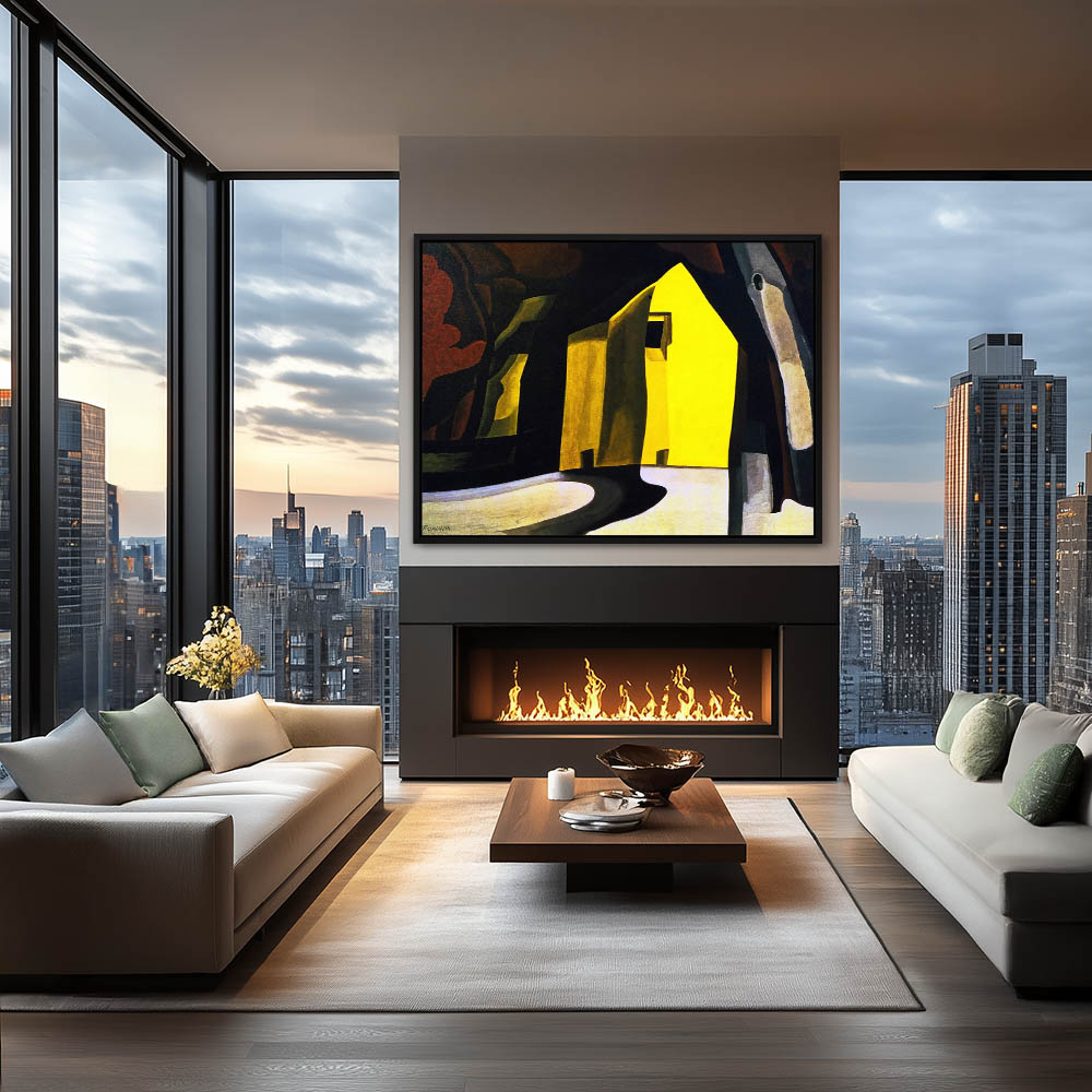Abstract Landscape Painting with a Yellow House