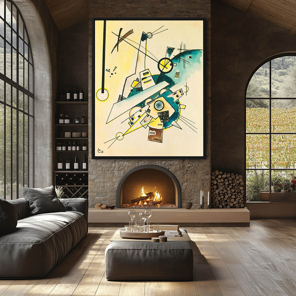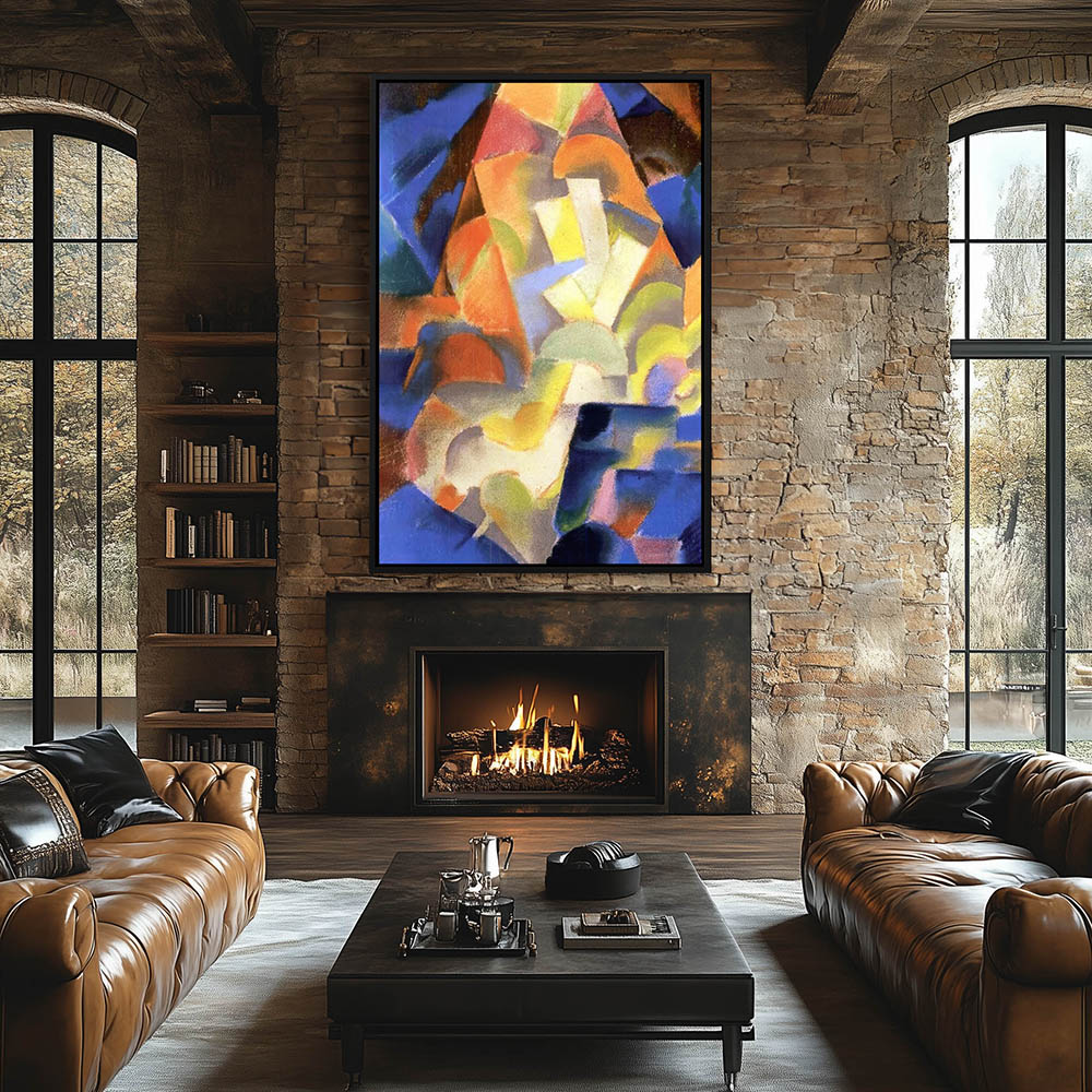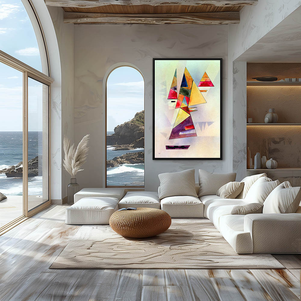 Richly colored colorblocked triangle on a background of soft pastel colors