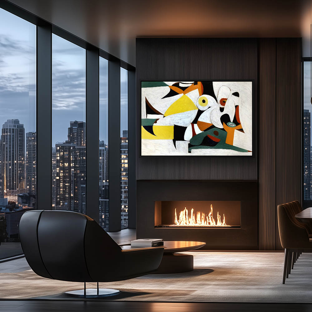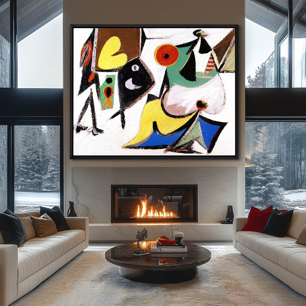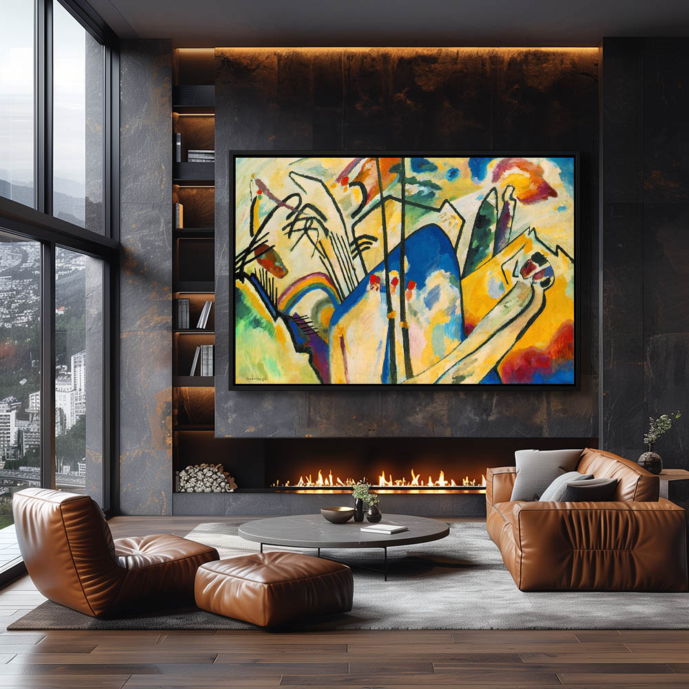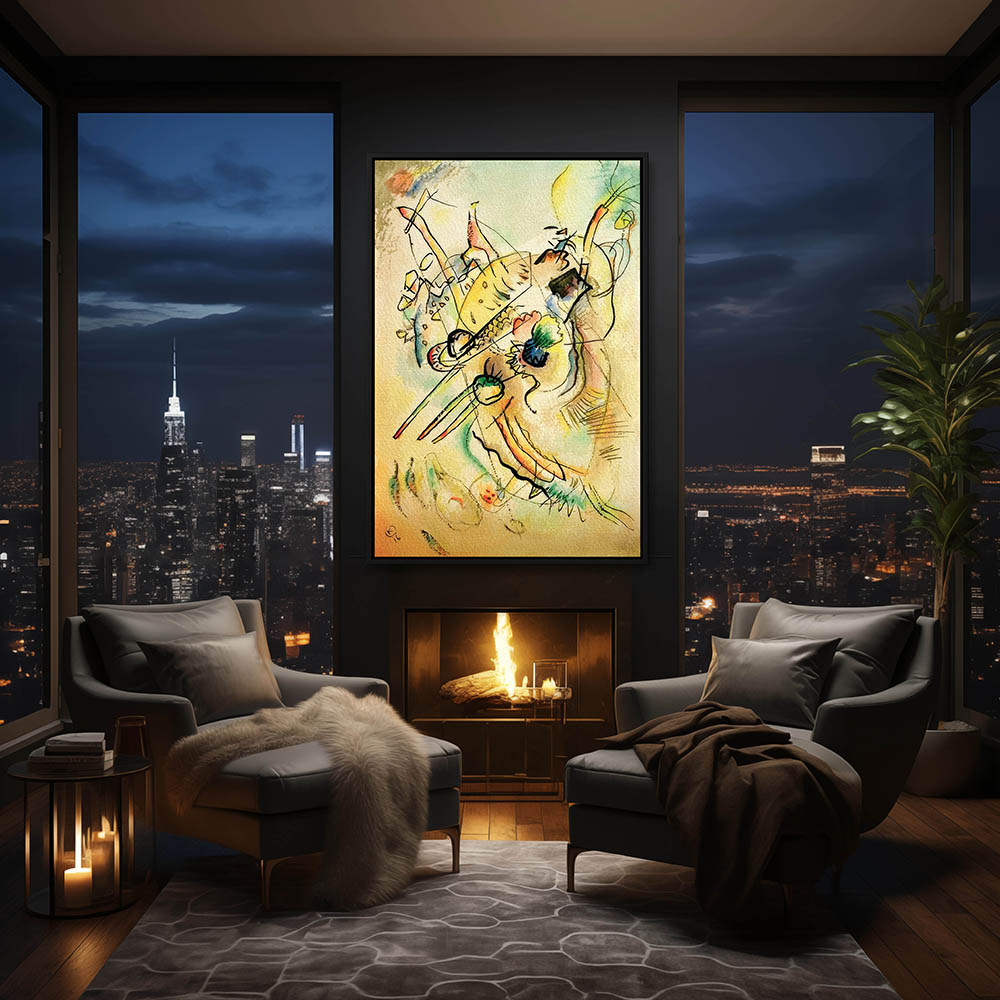 Richly colored colorblocked triangle on a background of soft pastel colors