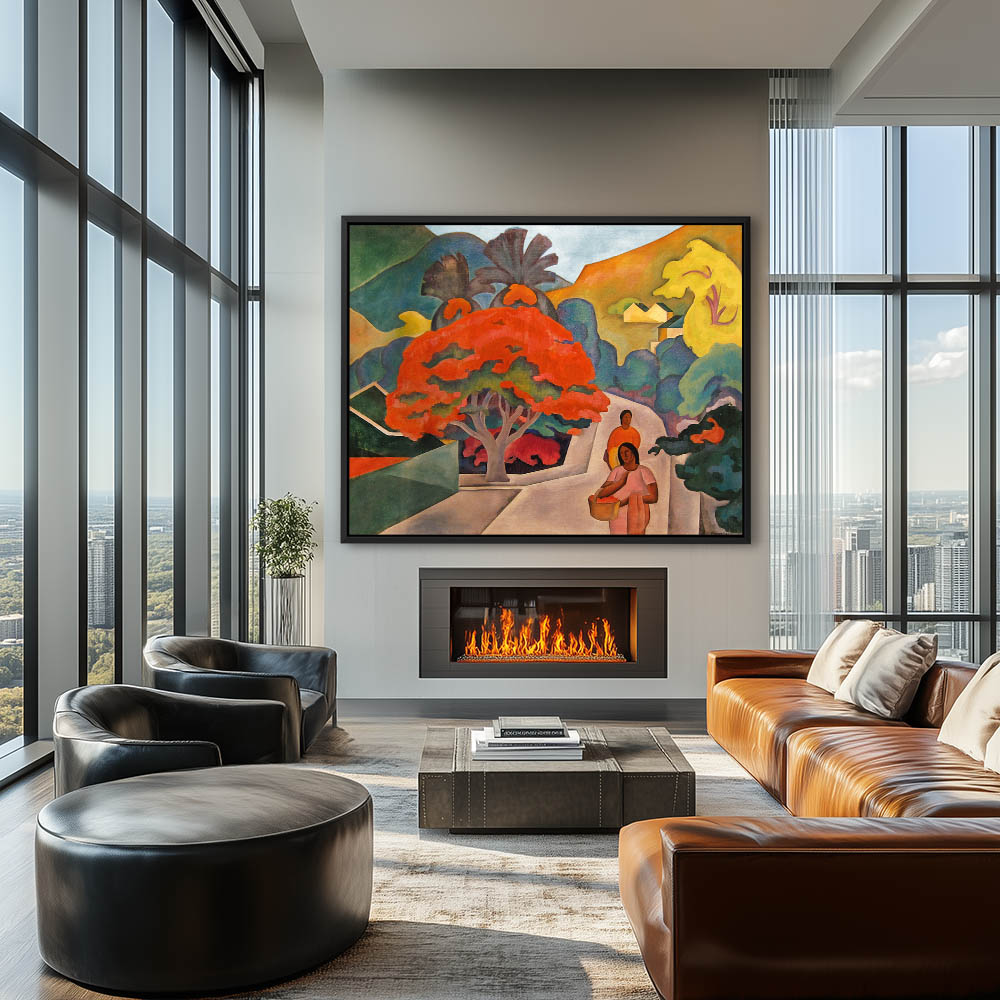 Hawaiian landscape with figures on a path