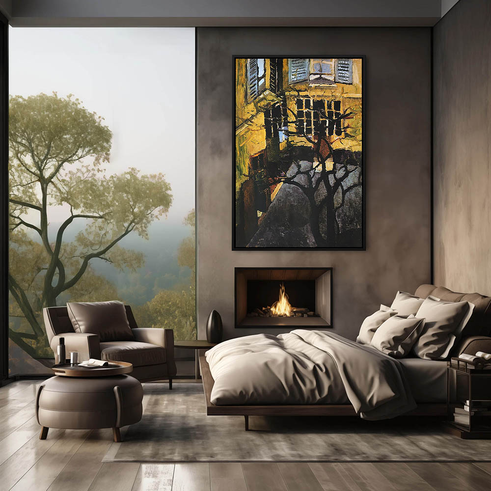 Impressionist Abstract Landscape Painting with Cottages