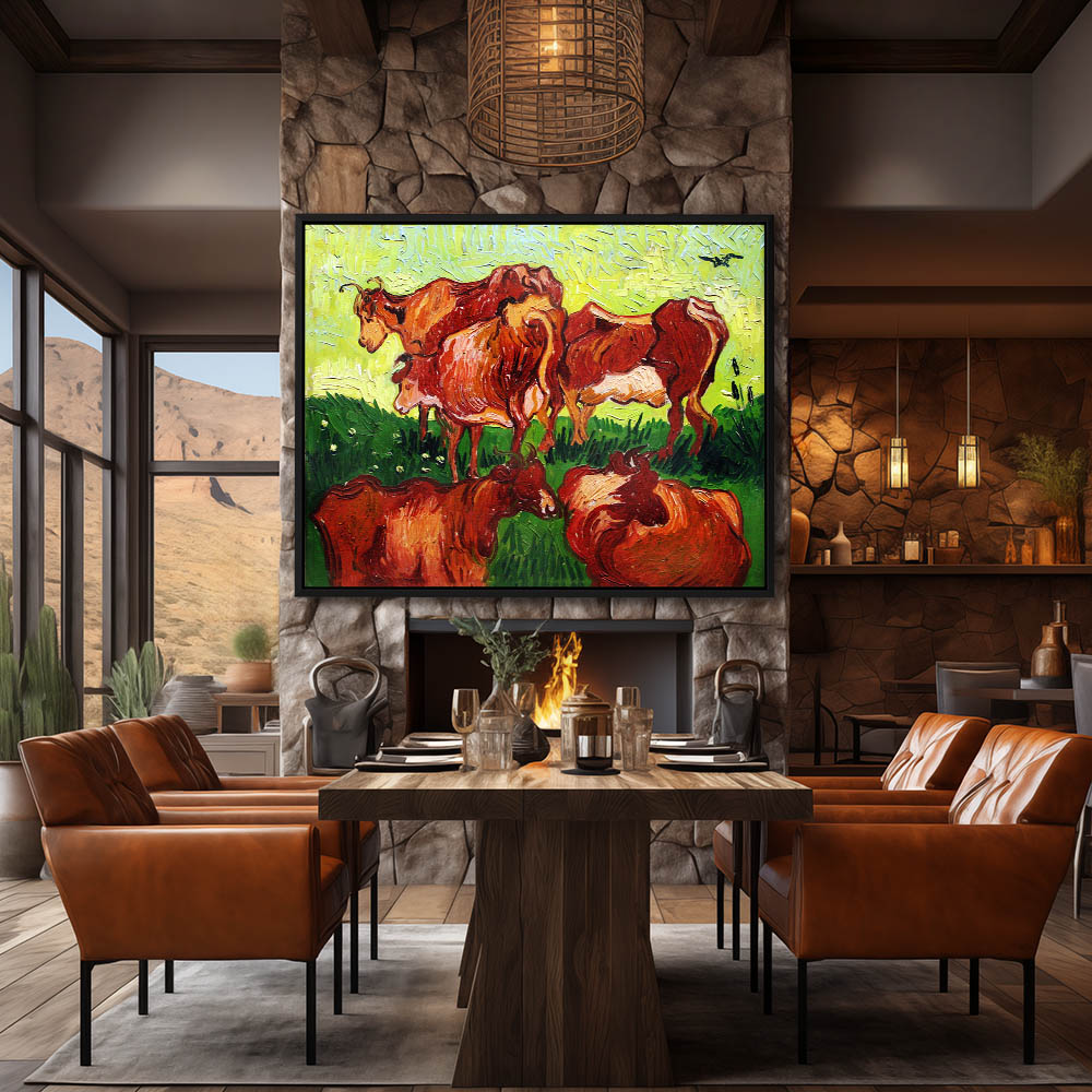 Impressionist Abstract Painting of Cows in the Meadow