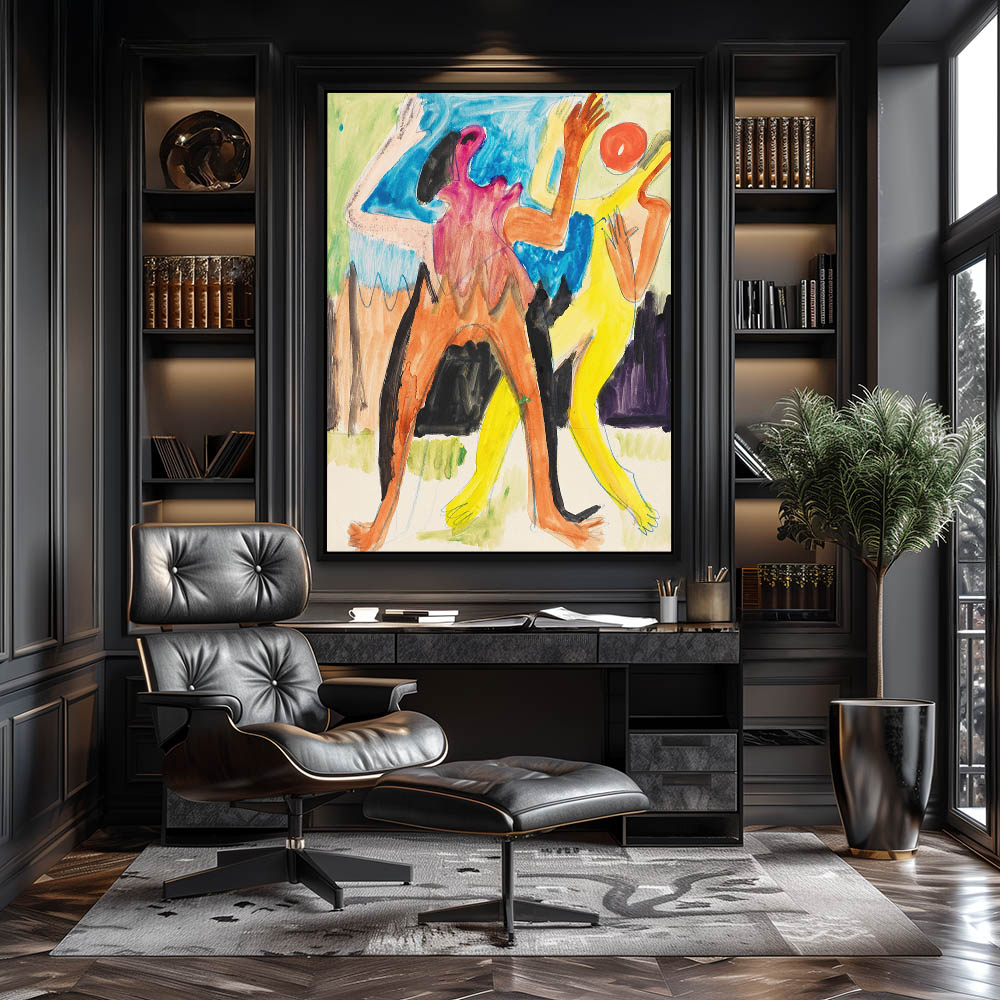 Abstract Painting with Workers Picking Cotton