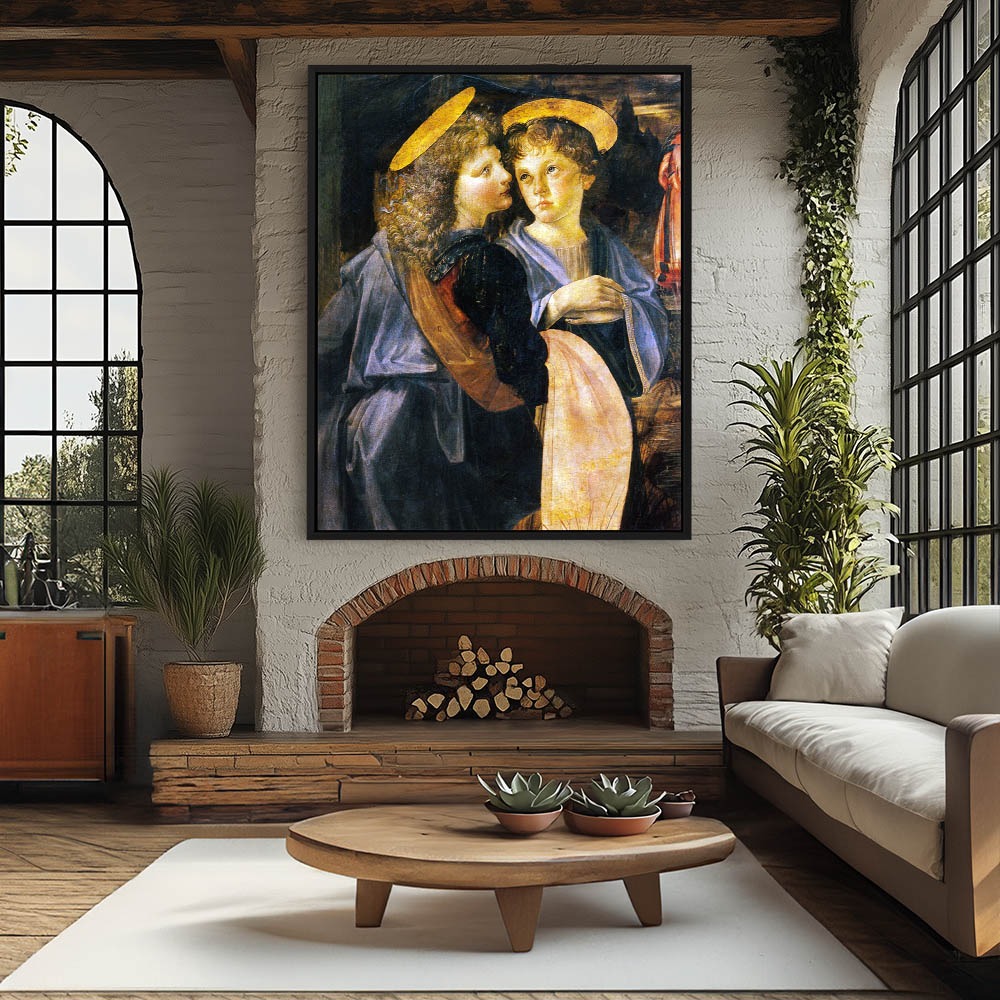 Vintage Painting of Two Angels Watching Jesus being Baptised by John the Baptist