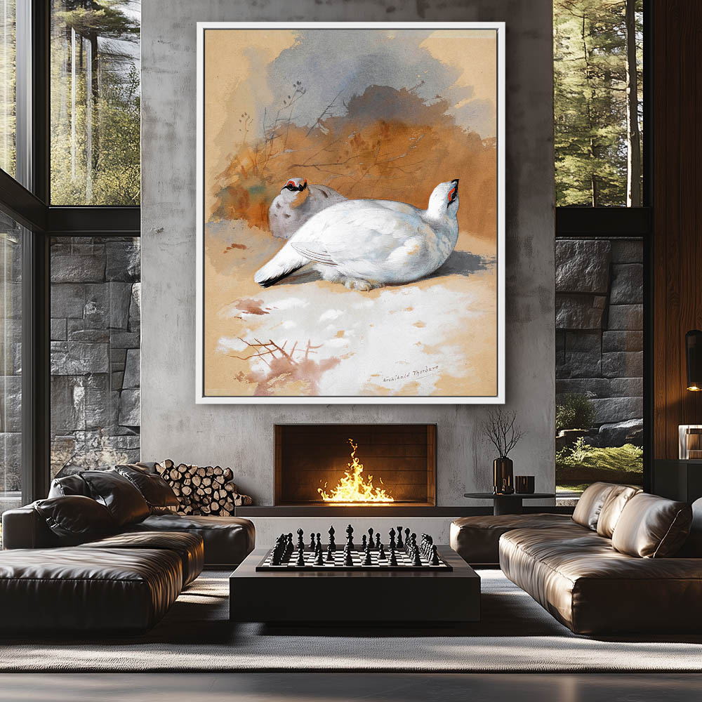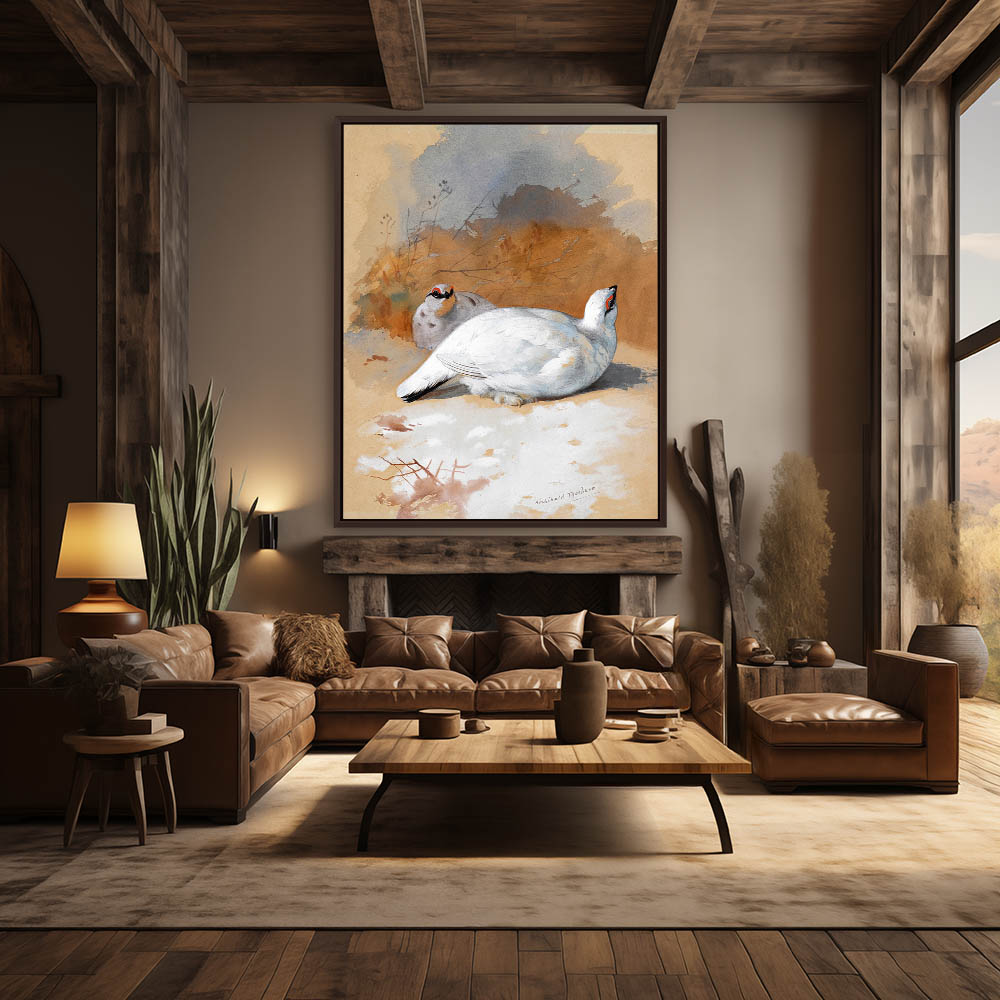 Painting of a Brace of Ptarmigan Birds in the Snow