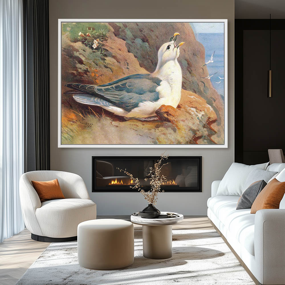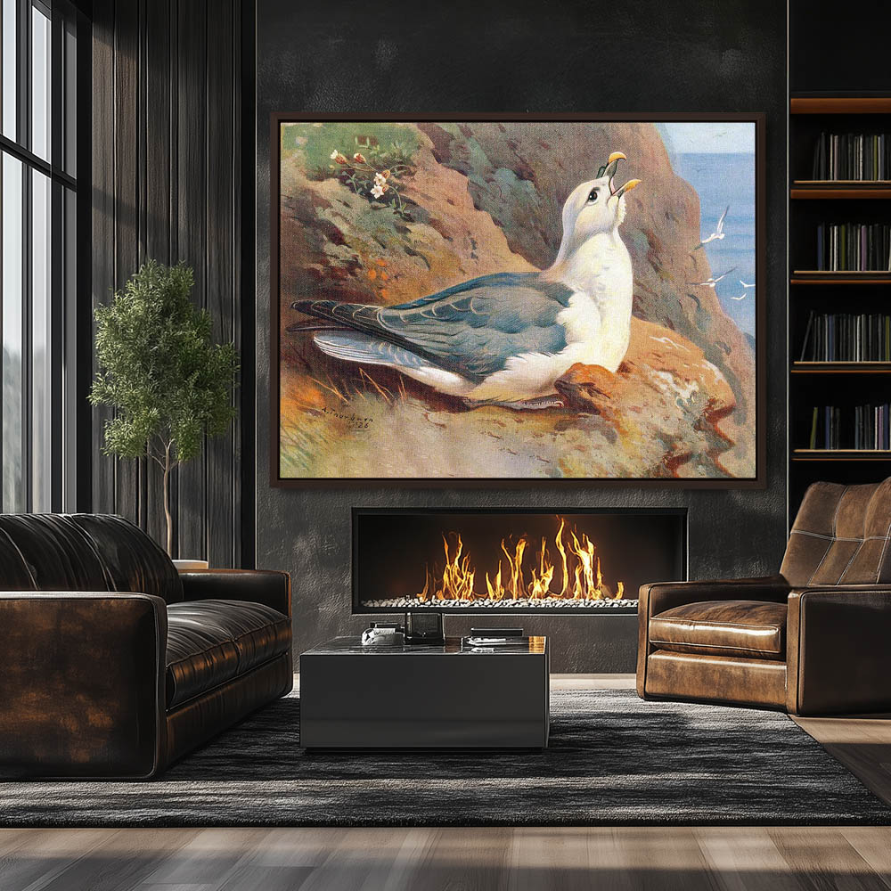Painting of a SeaGull Resting on a Rock on the Cliffs Overlooking the Sea