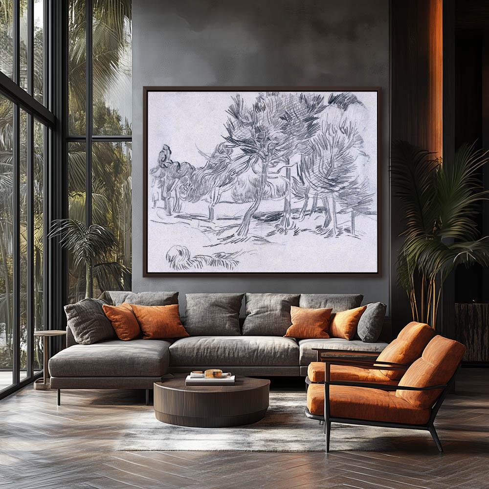 Landscape Drawing with Trees