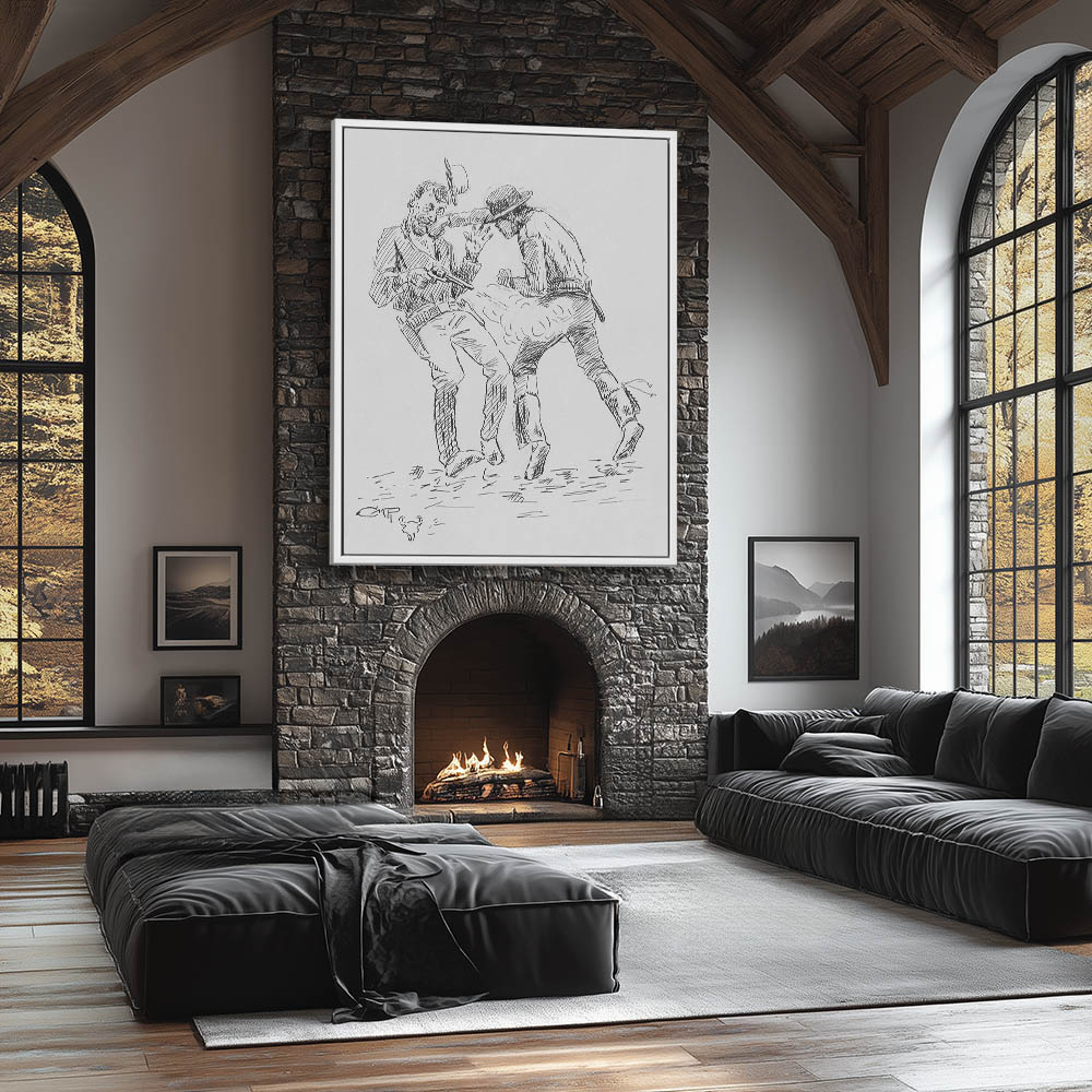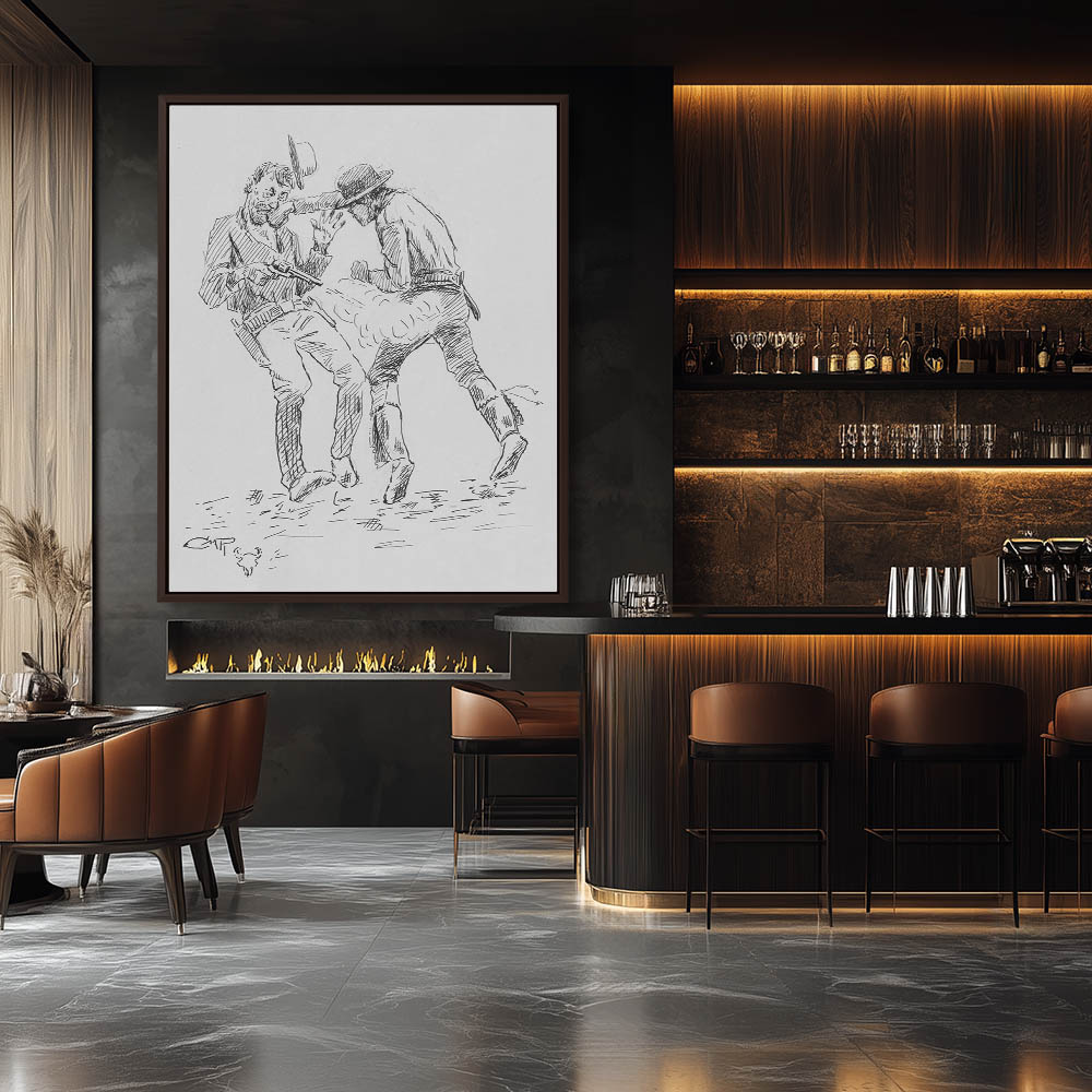 Two cowboys in a fight, fist and pistol