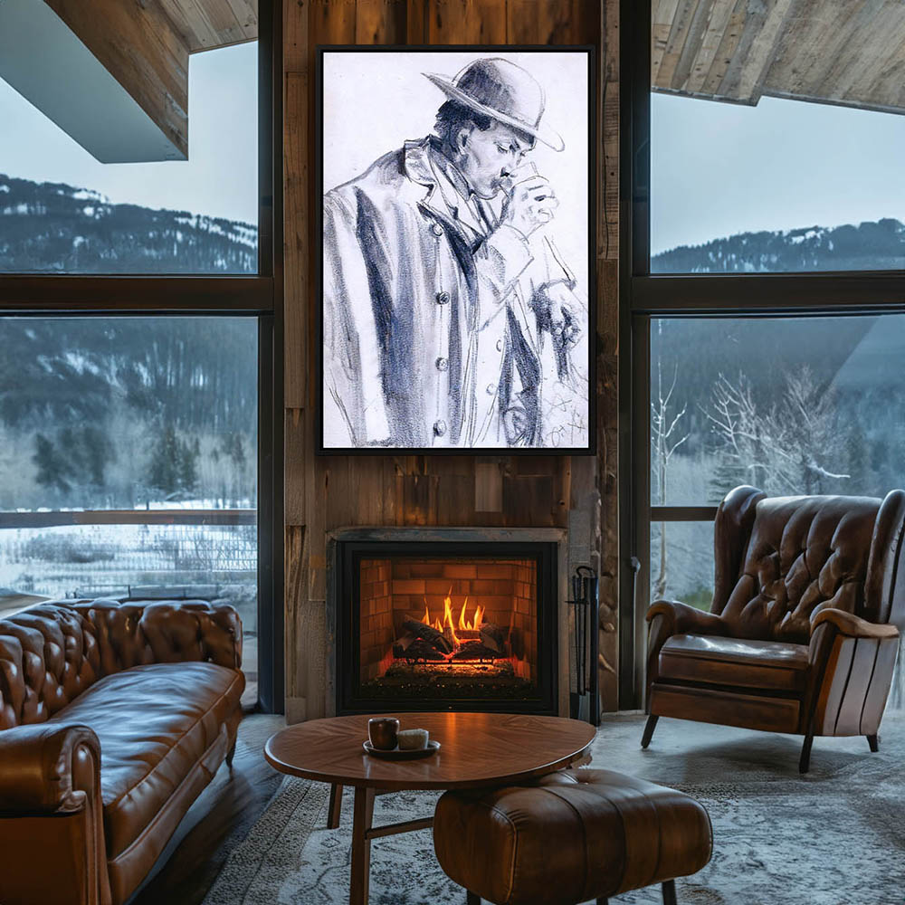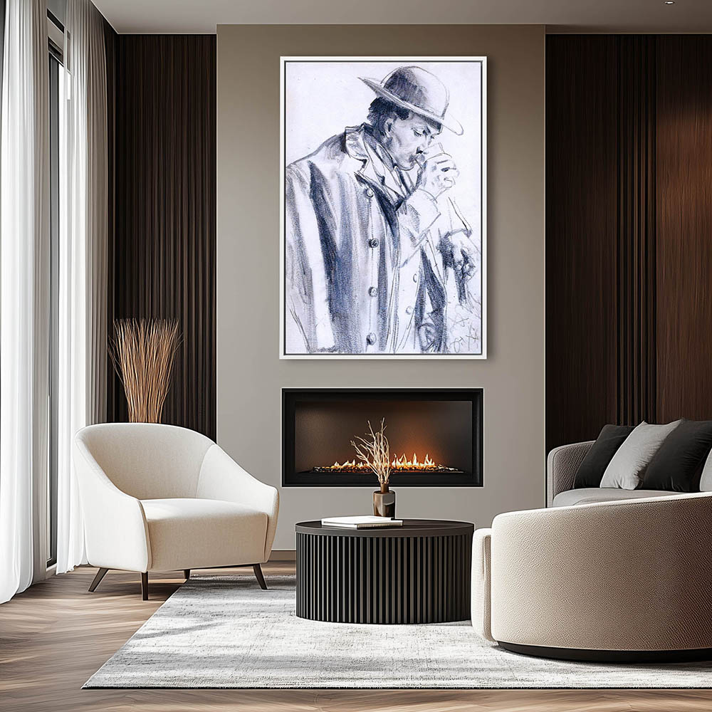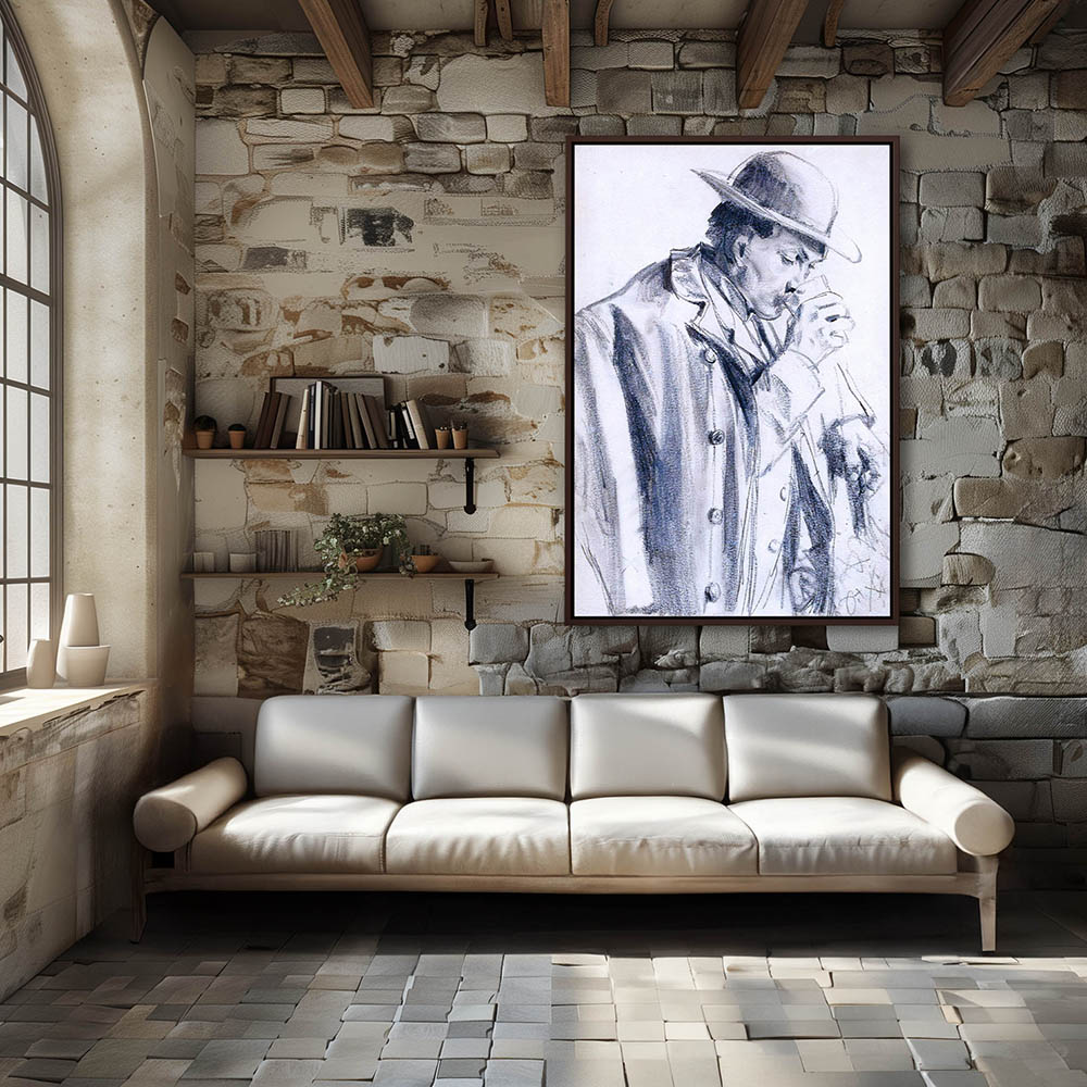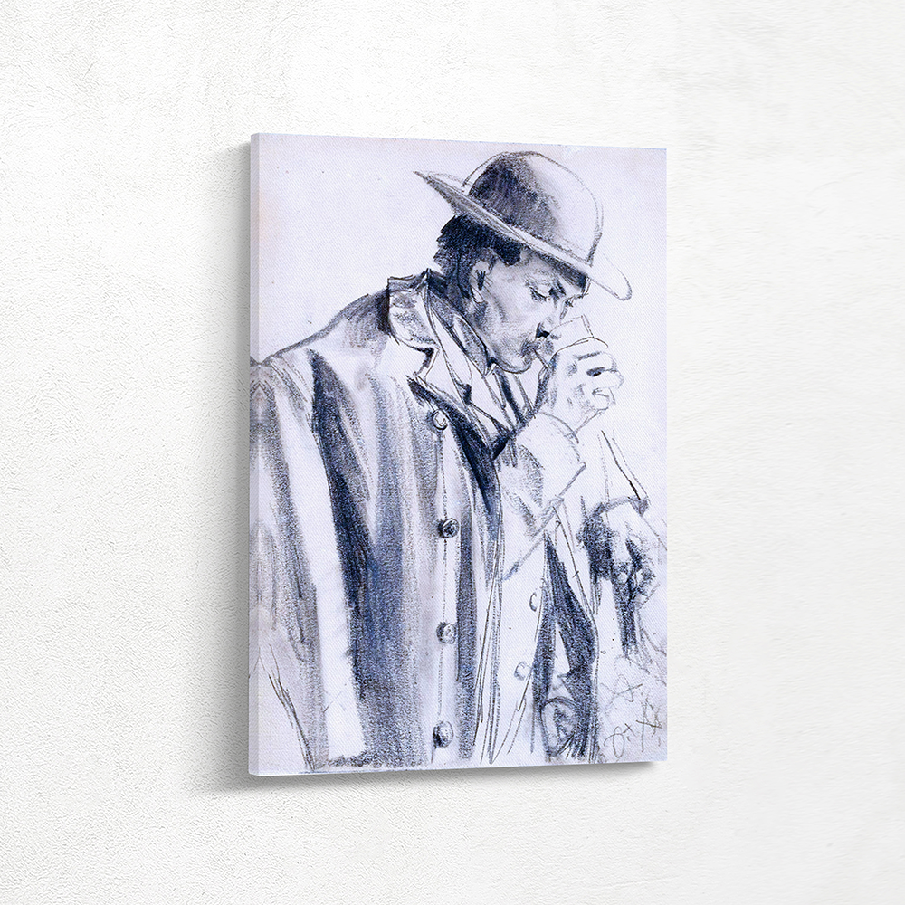 Vintage Figurative Drawing of a Man Drinking
