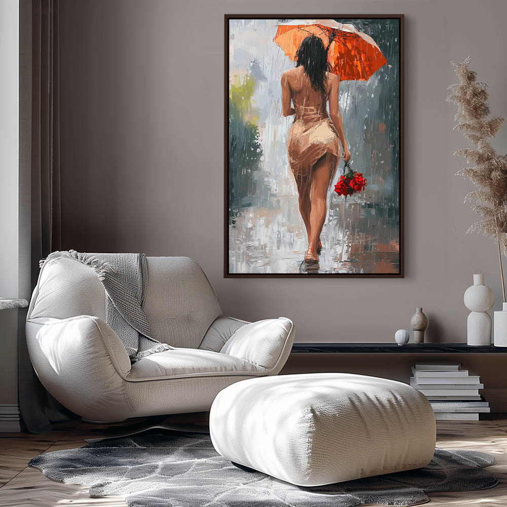 Abstract Painting of a Very Beautiful Woman Walking home in the Rain